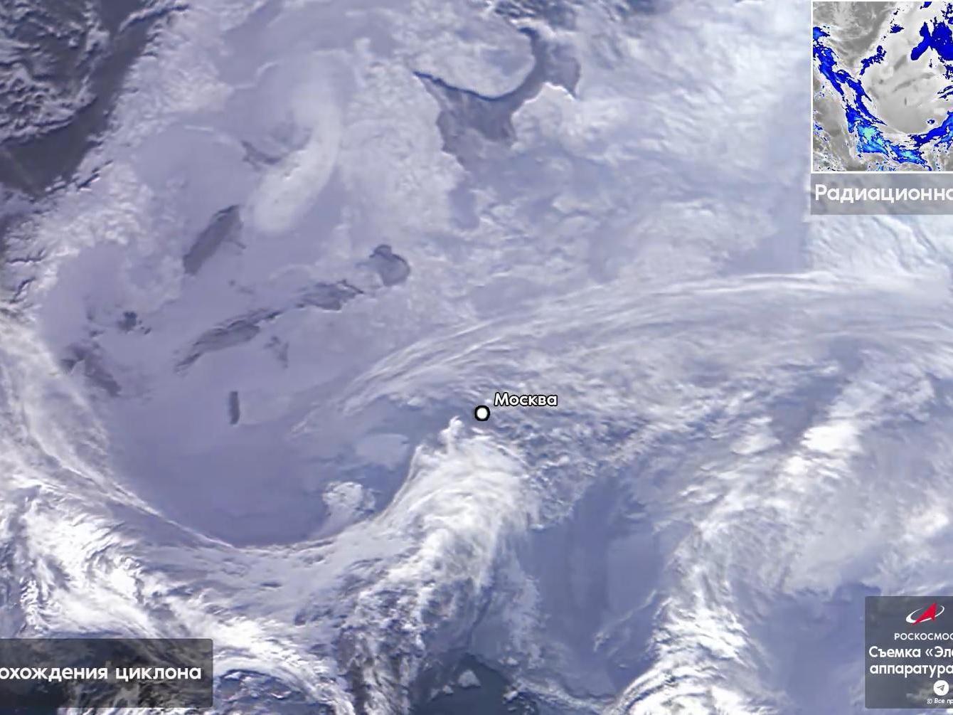 Roscosmos has been monitoring an atmospheric vortex for three days, with the cyclone causing snowfall in Moscow and a sharp temperature rise in Volgograd.