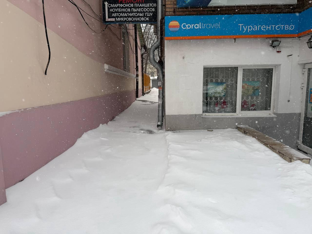 Pushkinskaya Street was being cleared, but the snowfall has covered it again.