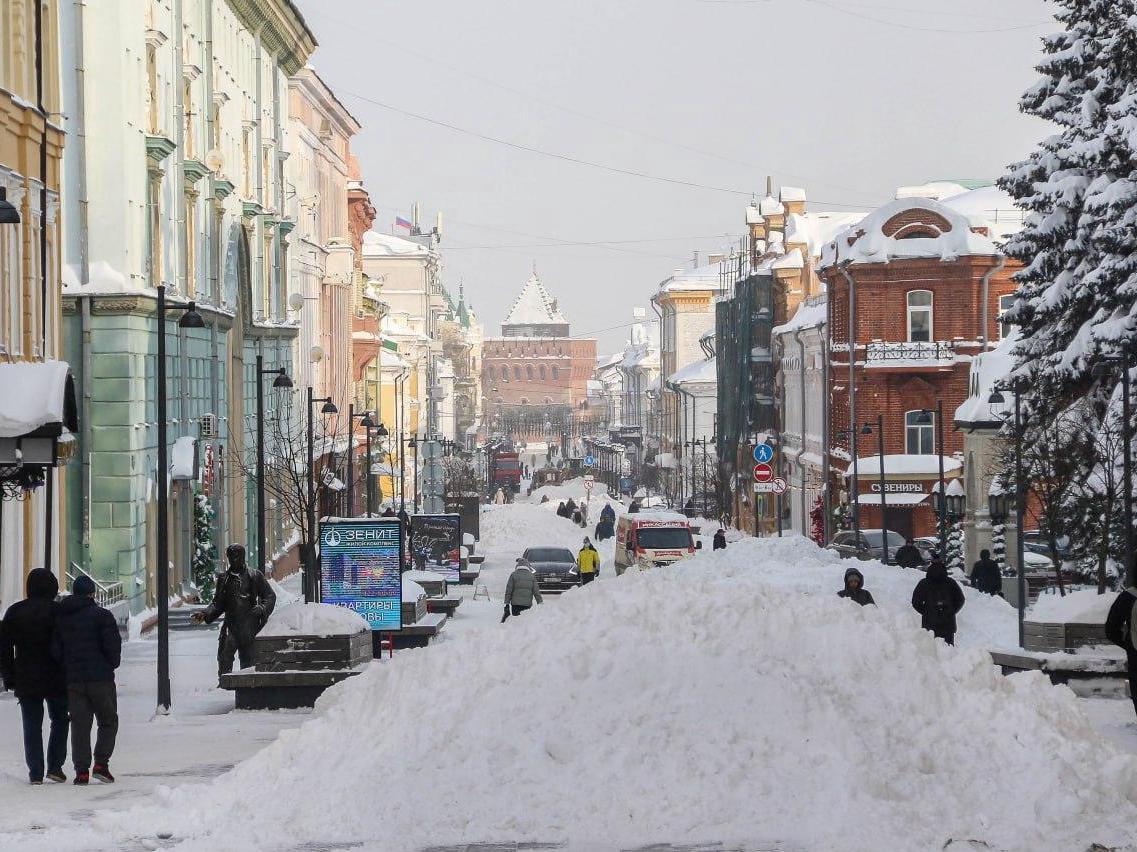Nizhny Novgorod remains in the grip of snow after heavy snowfall.