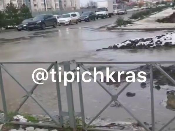 Sewage flooded a road in Krasnodar at the intersection of 40th Anniversary of Victory and Heroes Scouts streets after a pipe burst yesterday.