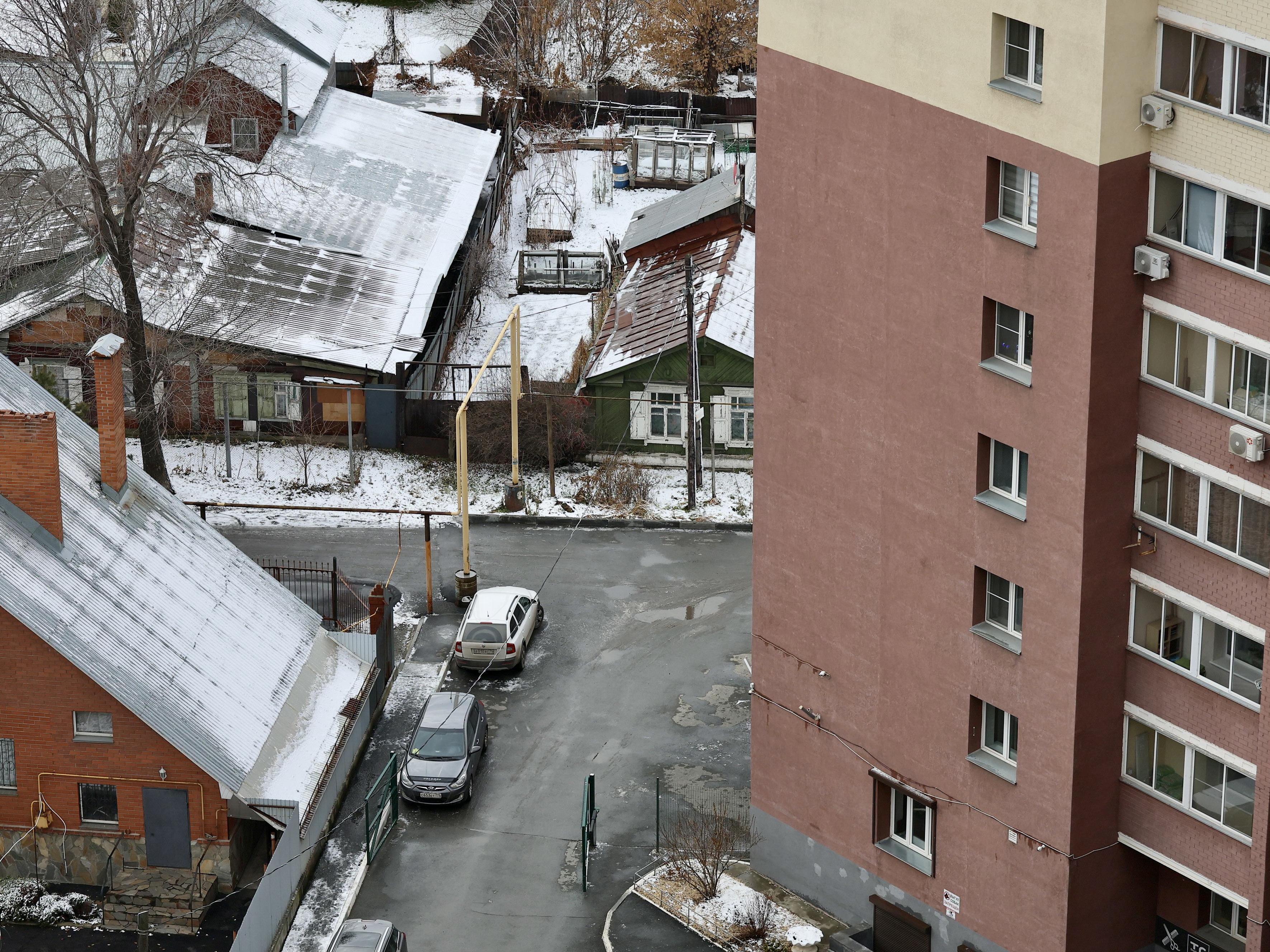 When driving along Shaumyan Street in Chelyabinsk, you inevitably notice the high-rise buildings that have sprung up at the intersection with Ovchinnikov Street. There are restaurants, fitness centers, and apartments costing 185,000 rubles per square meter (approximately $1,850 at current rates) — everything as it should be. The only thing that stands out from the overall picture is the private sector under the windows of the high-rises — small wooden houses seem to have remained from another era. But people still live there, trying to preserve their way of life as it was 40 years ago. About what this place was like in the 1990s and how they have to survive now — in a report by 74.RU.