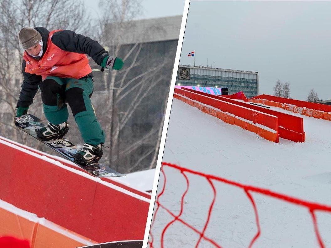 Snowboarders Compete on Eight-Meter High Ramp on Perm Esplanade