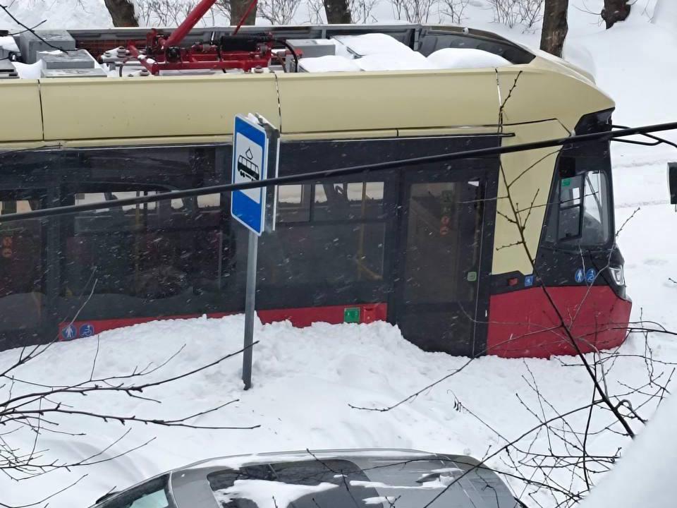 Eyewitnesses reported on social media about a tram derailment in the Avtozavodsky district of Nizhny Novgorod. The incident occurred due to heavy snowfall.
