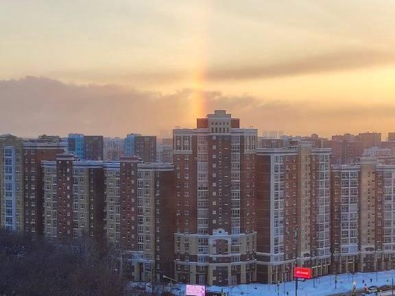On Monday, February 2, residents of Moscow and the Moscow region observed a very unusual phenomenon for winter — a rainbow appeared in the sky. A photograph was shared with the MSK1.RU editorial office by a reader named Marina, who noticed the glow on Kashirskoye Highway.