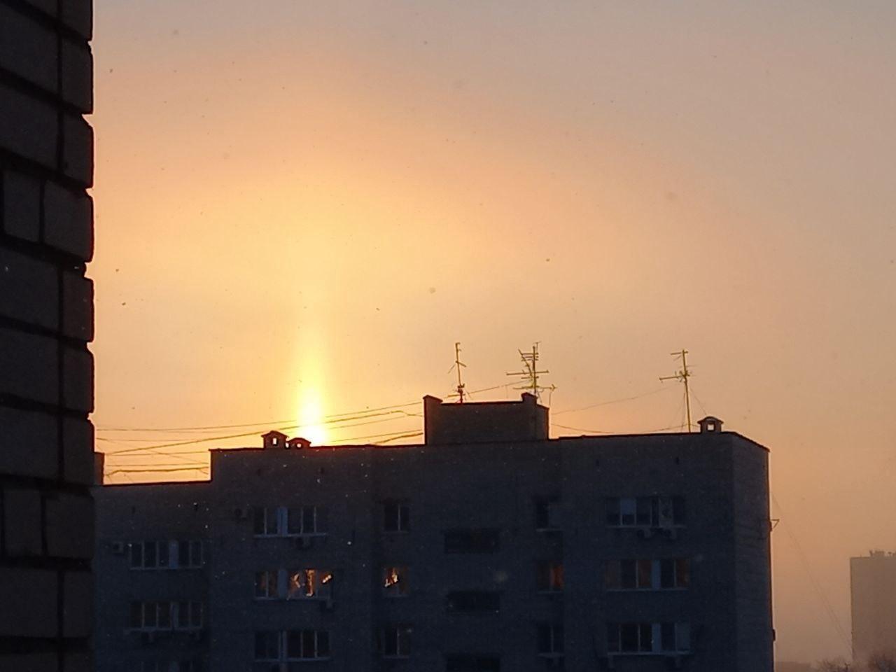 Over the past few days, residents across the Volgograd region have repeatedly noticed an unusual shape of the Sun in the sky, resembling either a pillar or a candle. And at nightfall, when the main celestial body hid, light stripes appeared in the sky, as if someone was shining a flashlight downwards. We explain what it is.