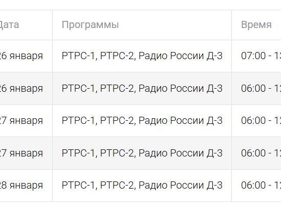 The outages will affect two multiplexes: RTRS-1 and RTRS-2, as well as «Radio Russia».