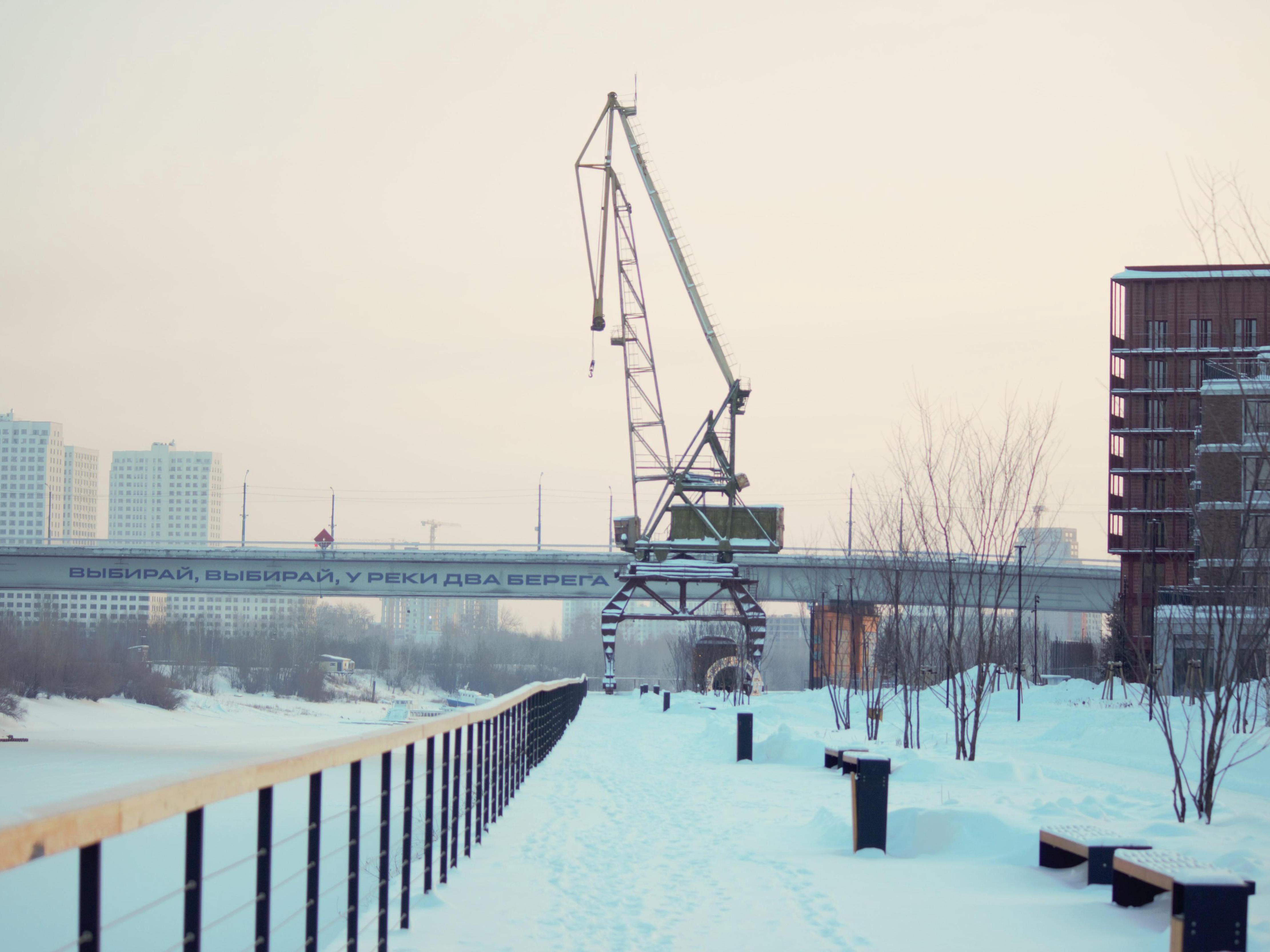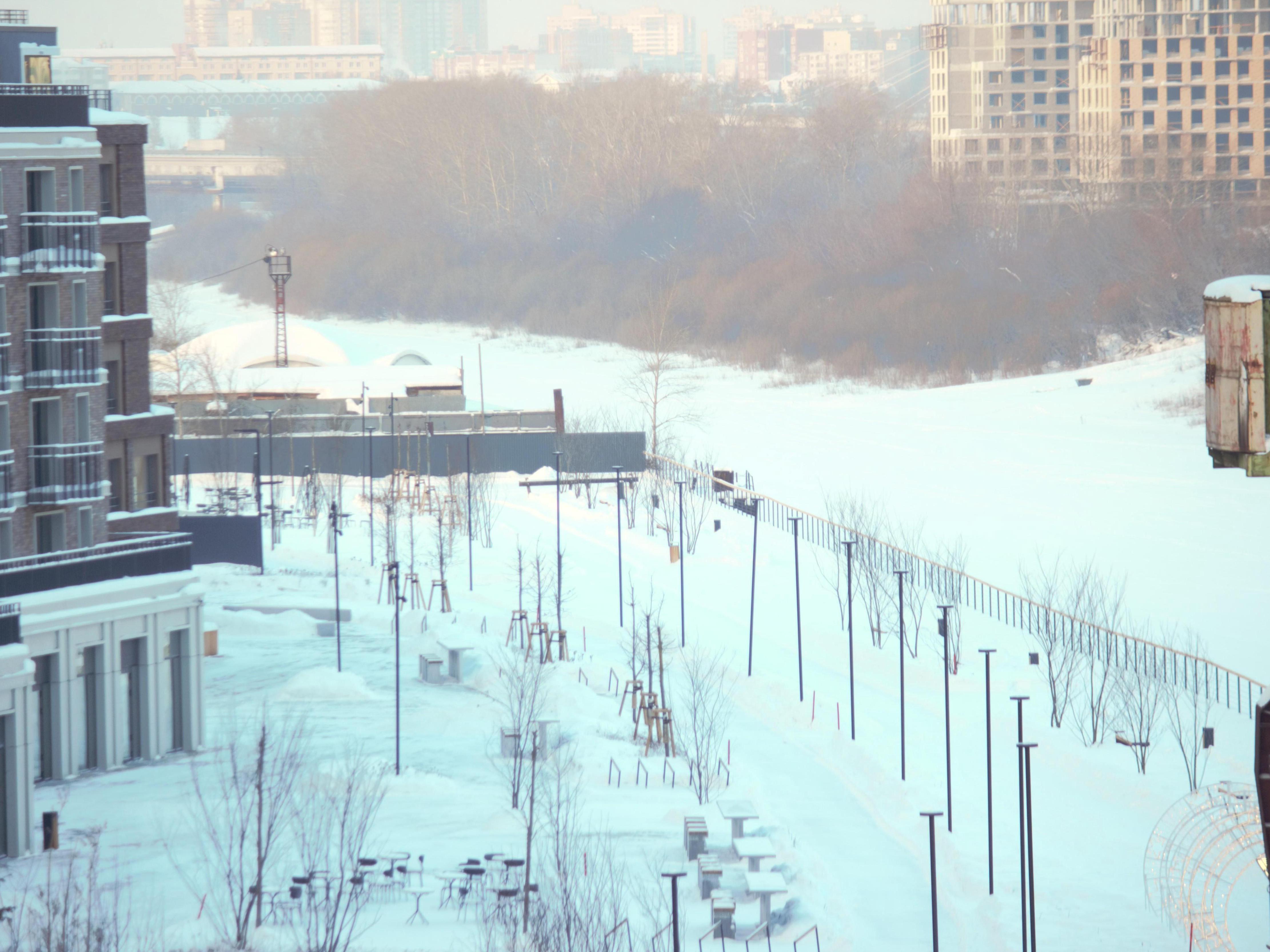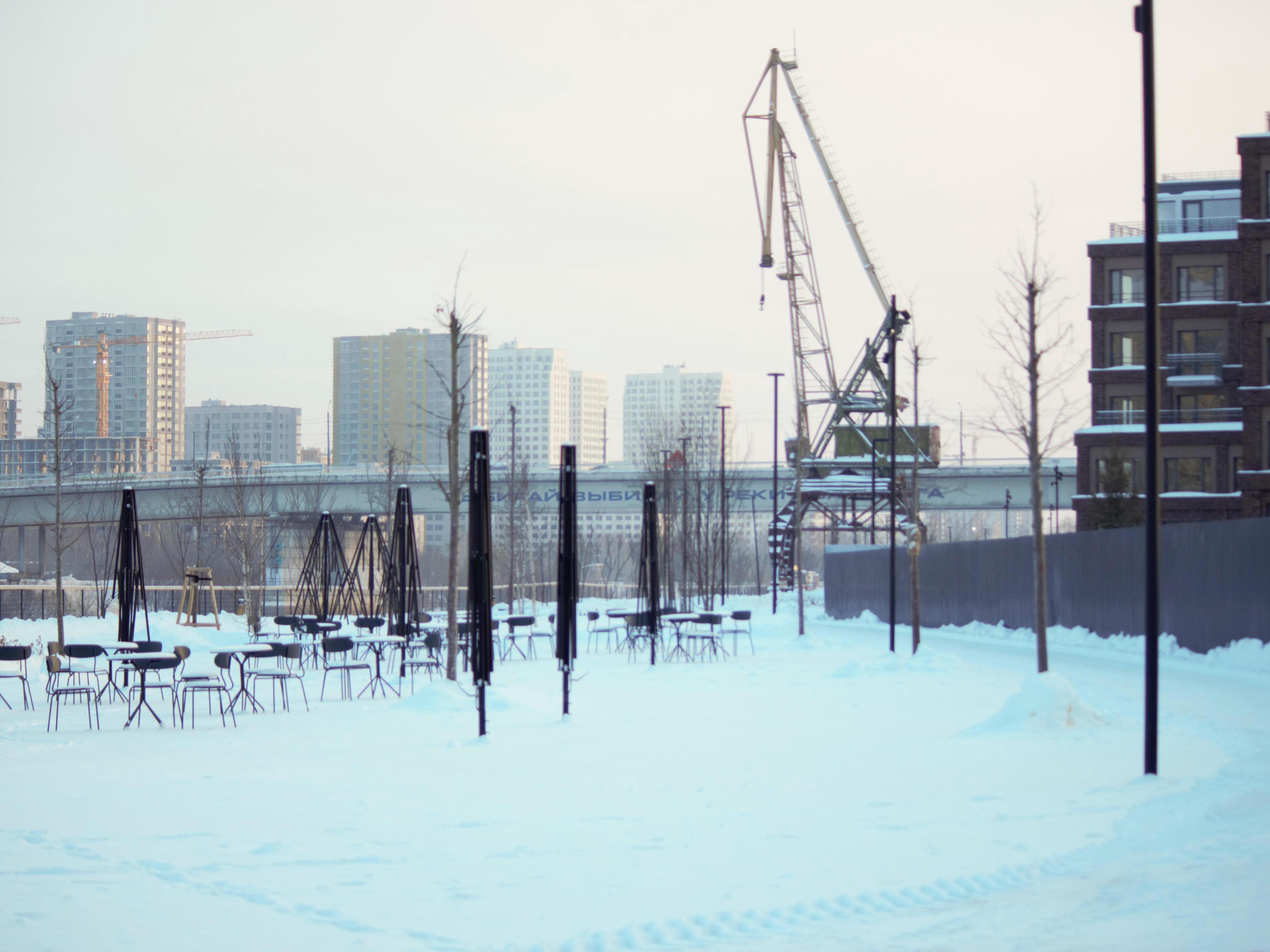 Also, tables and various benches have been placed on the embankment. Apparently, this is for summer — in winter at -30°C (-22°F), sitting there is not desirable for obvious reasons. Probably, that«s why they are not cleared but covered in snow.
