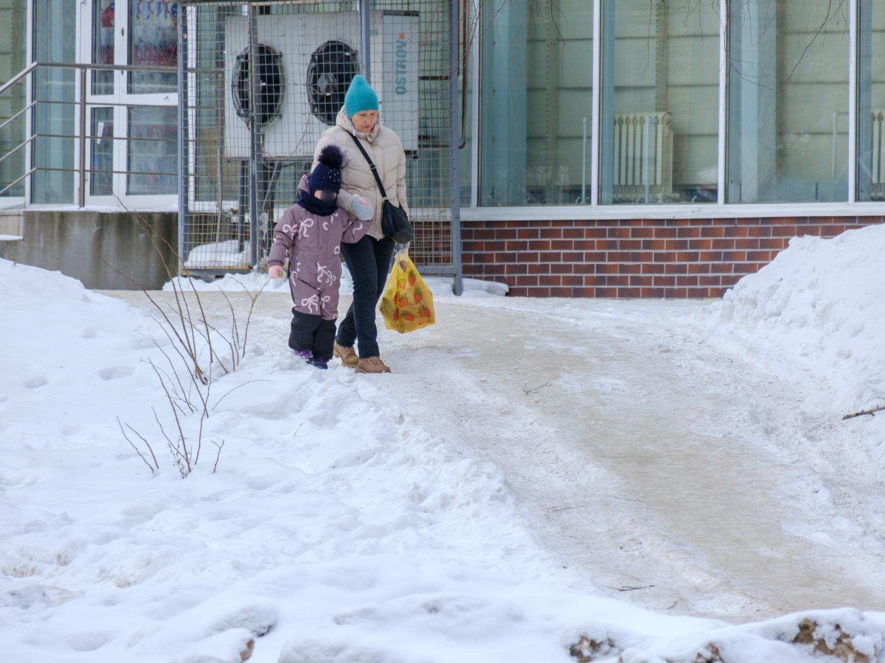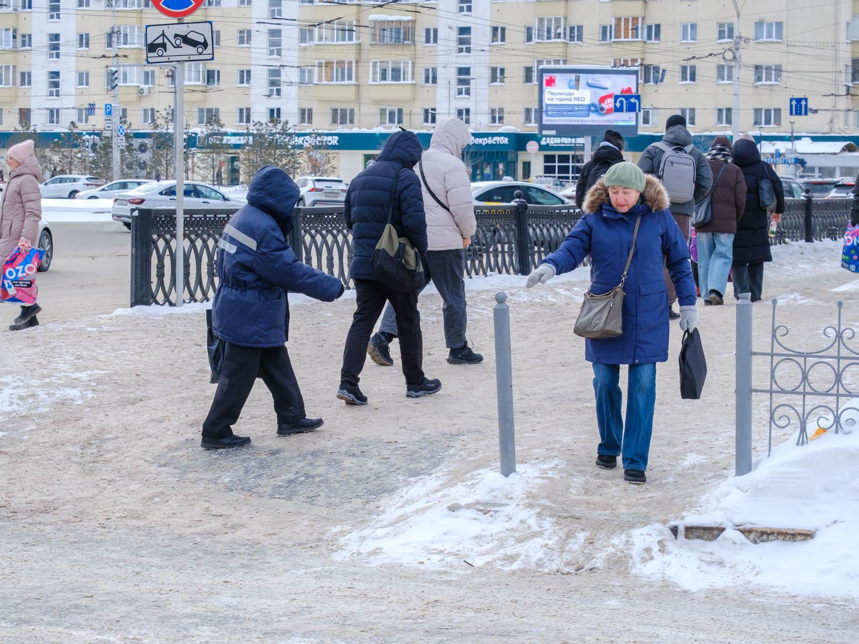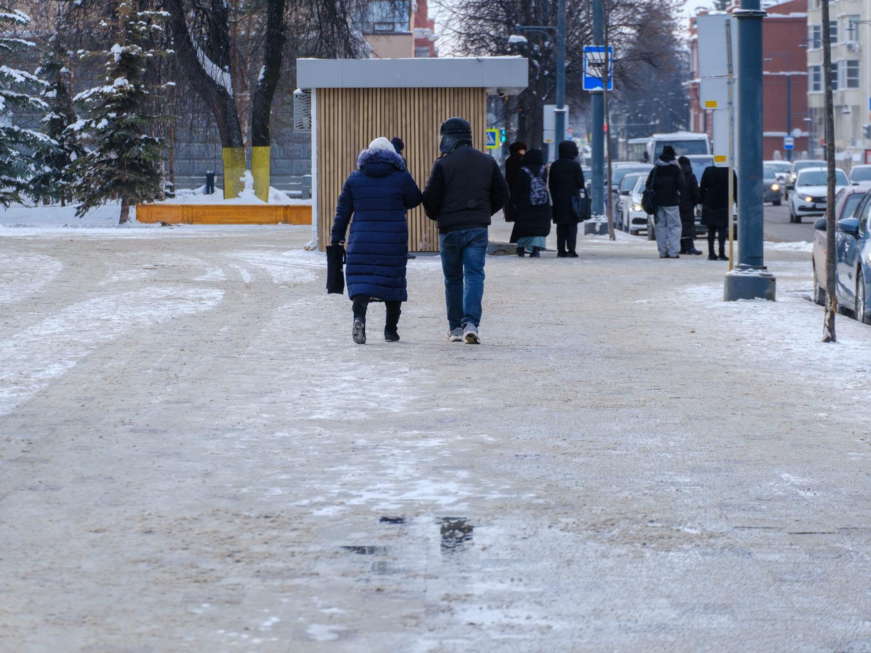 After heavy snowfalls and frosts, streets in Ufa have become slippery with compacted snow and ice patches, particularly at pedestrian crossings and in courtyards.