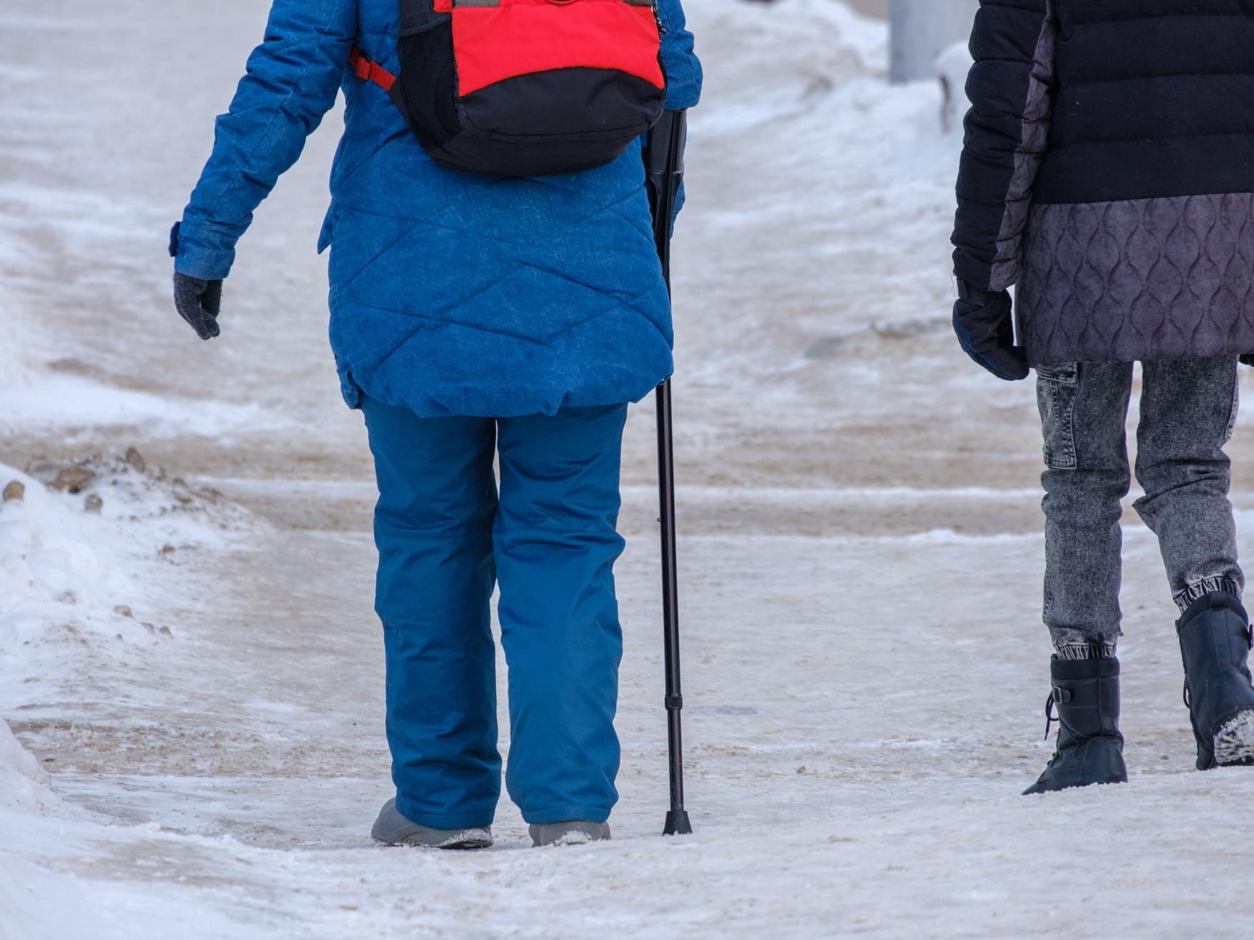 It is advisable to hold onto stable objects when traversing slippery patches.