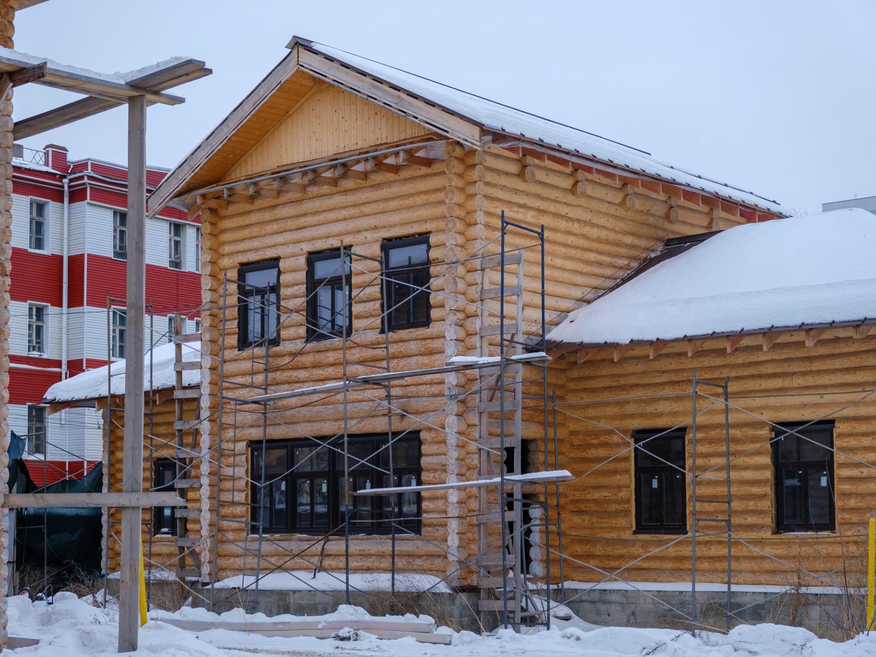 The current readiness of the entire object is 60-70%. After construction work is finished, interior and exterior finishing will be required. According to the contract terms, the buildings must be restored to their original appearance. However, finishing cannot begin immediately — the logs must settle, which will take one or two years.