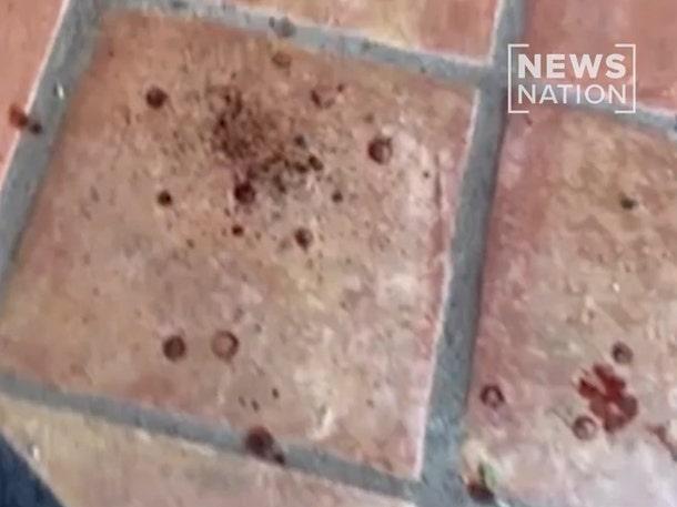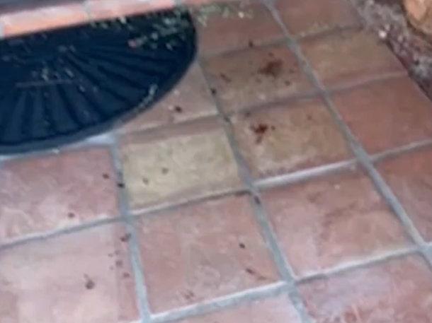 Footage captured by a correspondent shows blood and an Amazon package on the porch.