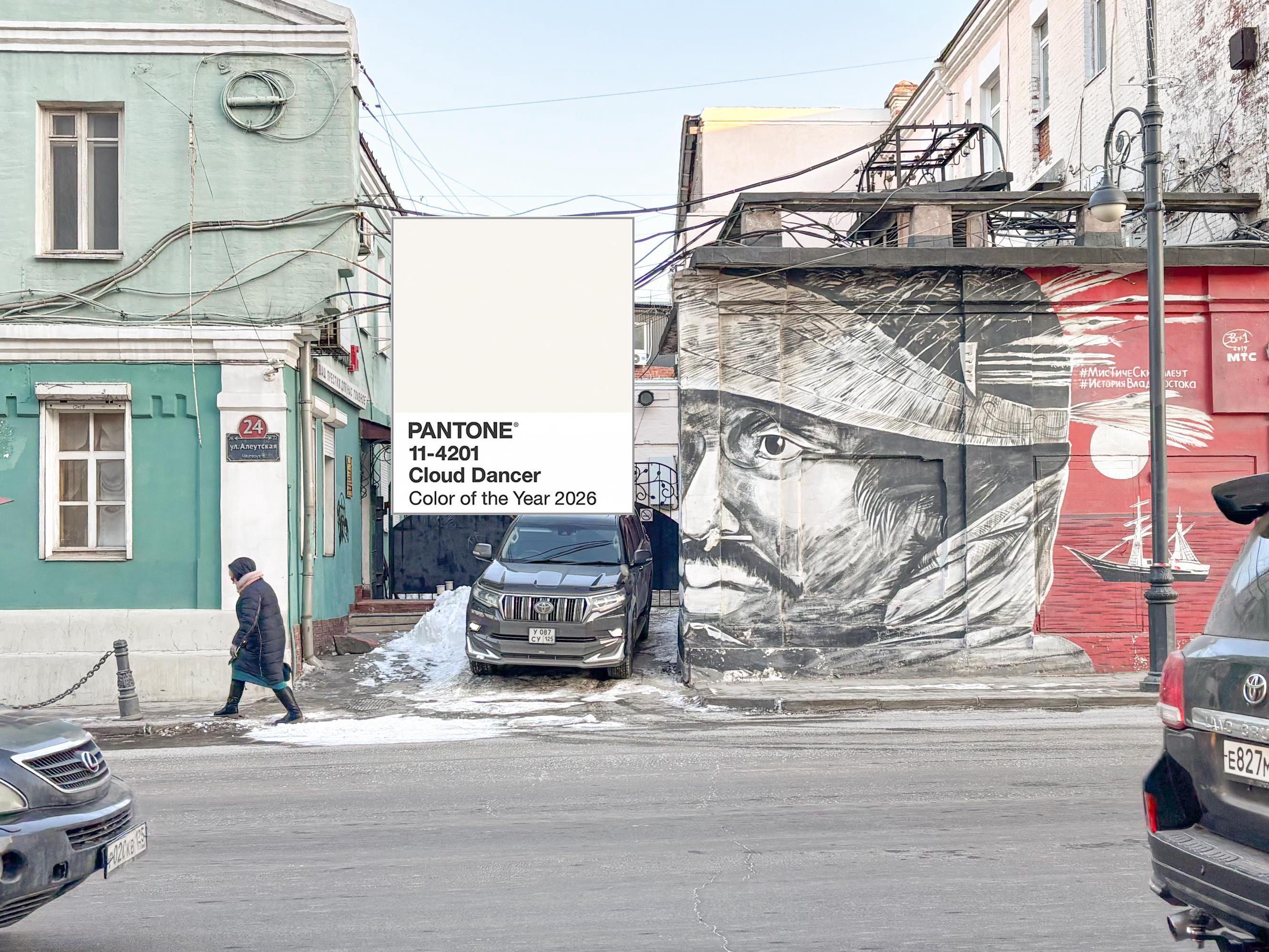 Pantone«s Cloud Dancer, a white hue symbolizing serenity and new starts, is featured in Vladivostok»s urban landscape.
