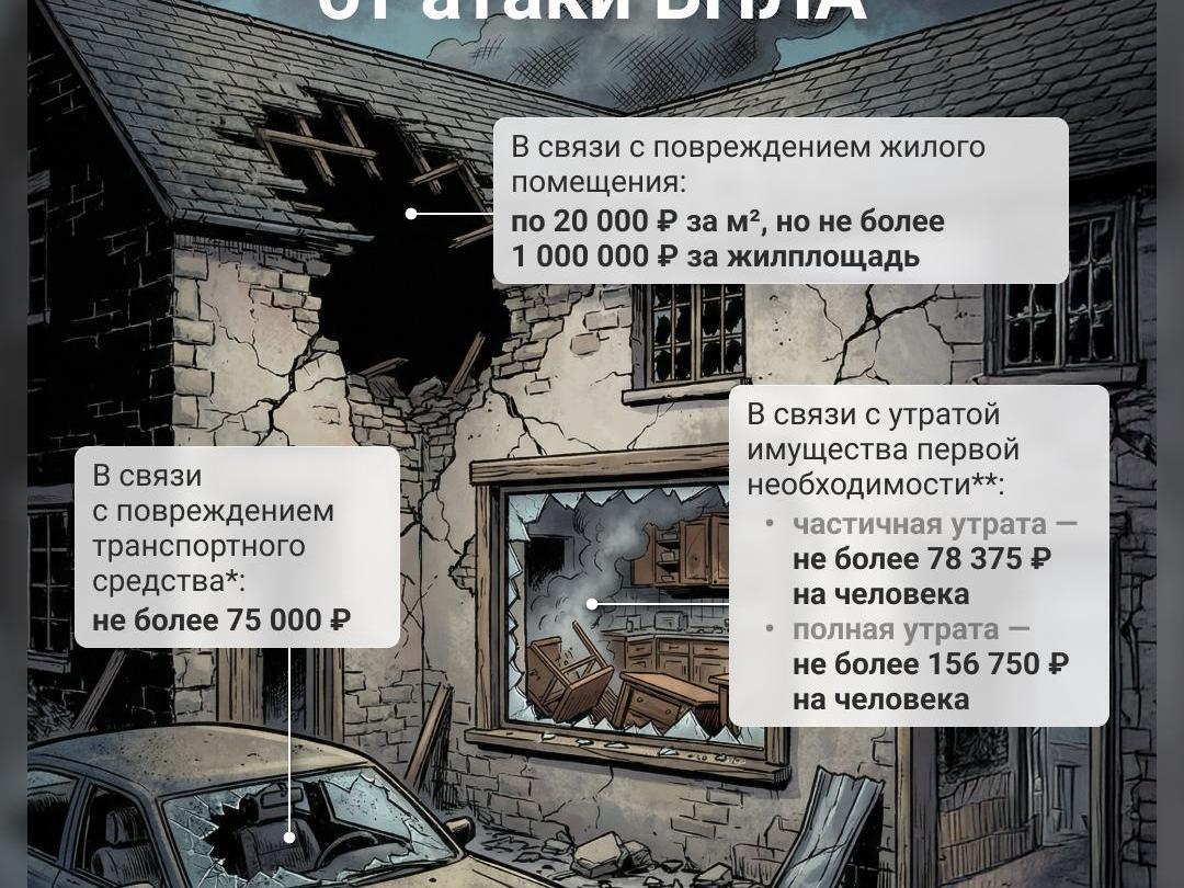 - for damage to a residential premises within the city: no more than 1,000,000 rubles (about $11,100 at current rates);