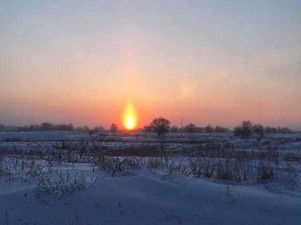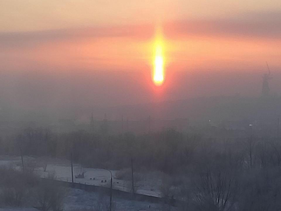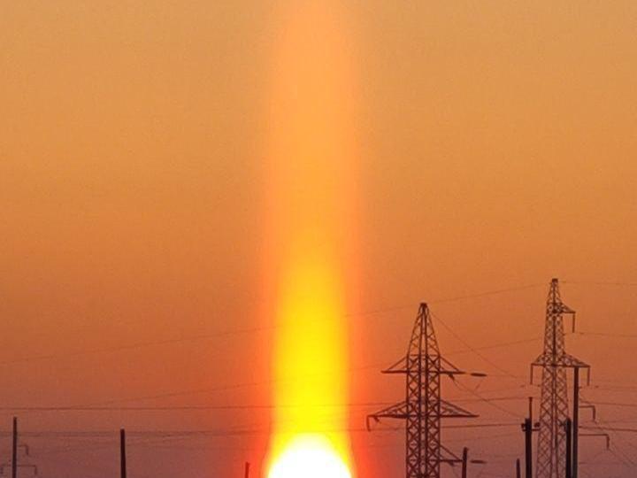 Specialists identify the phenomenon as solar (light) pillars. Their formation is linked to the intense movement of air masses and a sharp drop in temperature, leading to the appearance of flat ice crystals in the atmosphere that reflect light.