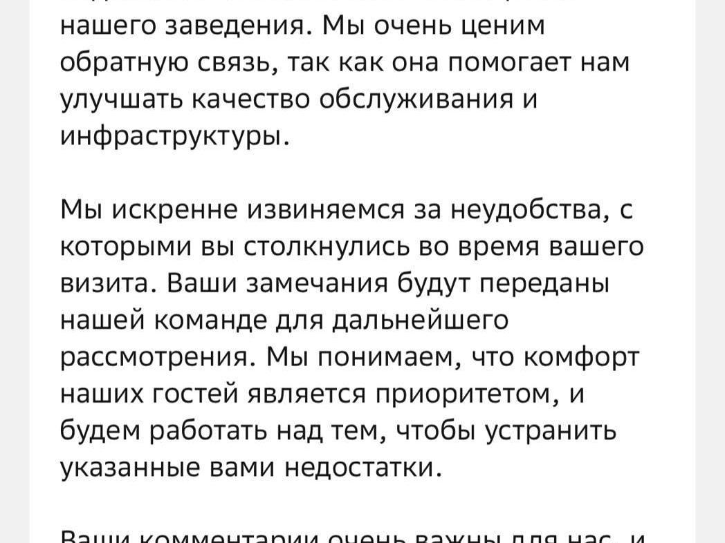 «We sincerely apologize for the inconveniences you encountered during your visit. Your remarks will be forwarded to our team for further review. We understand that the comfort of our guests is a priority and will work to eliminate the shortcomings you have identified», the theatre notes in its response.