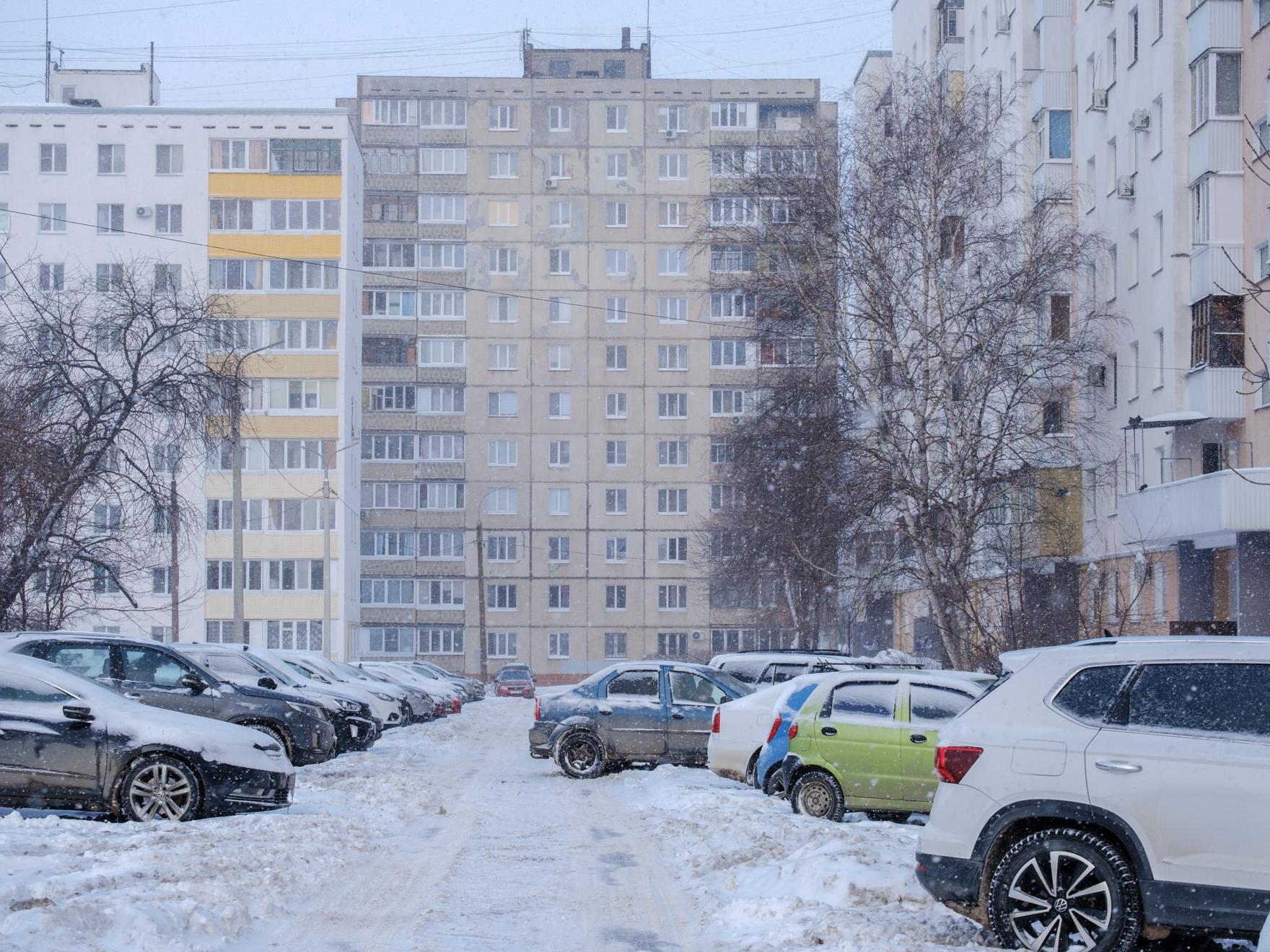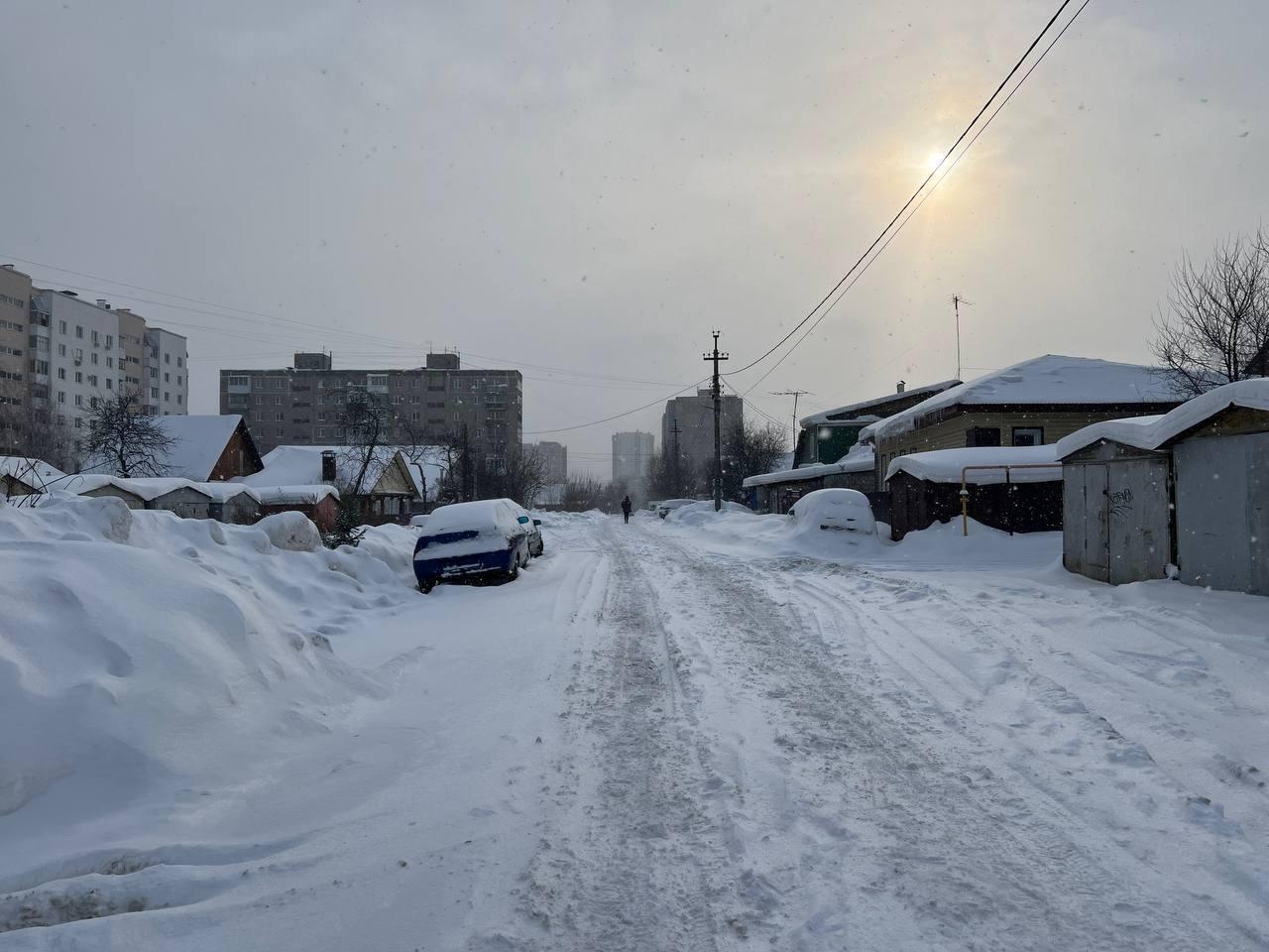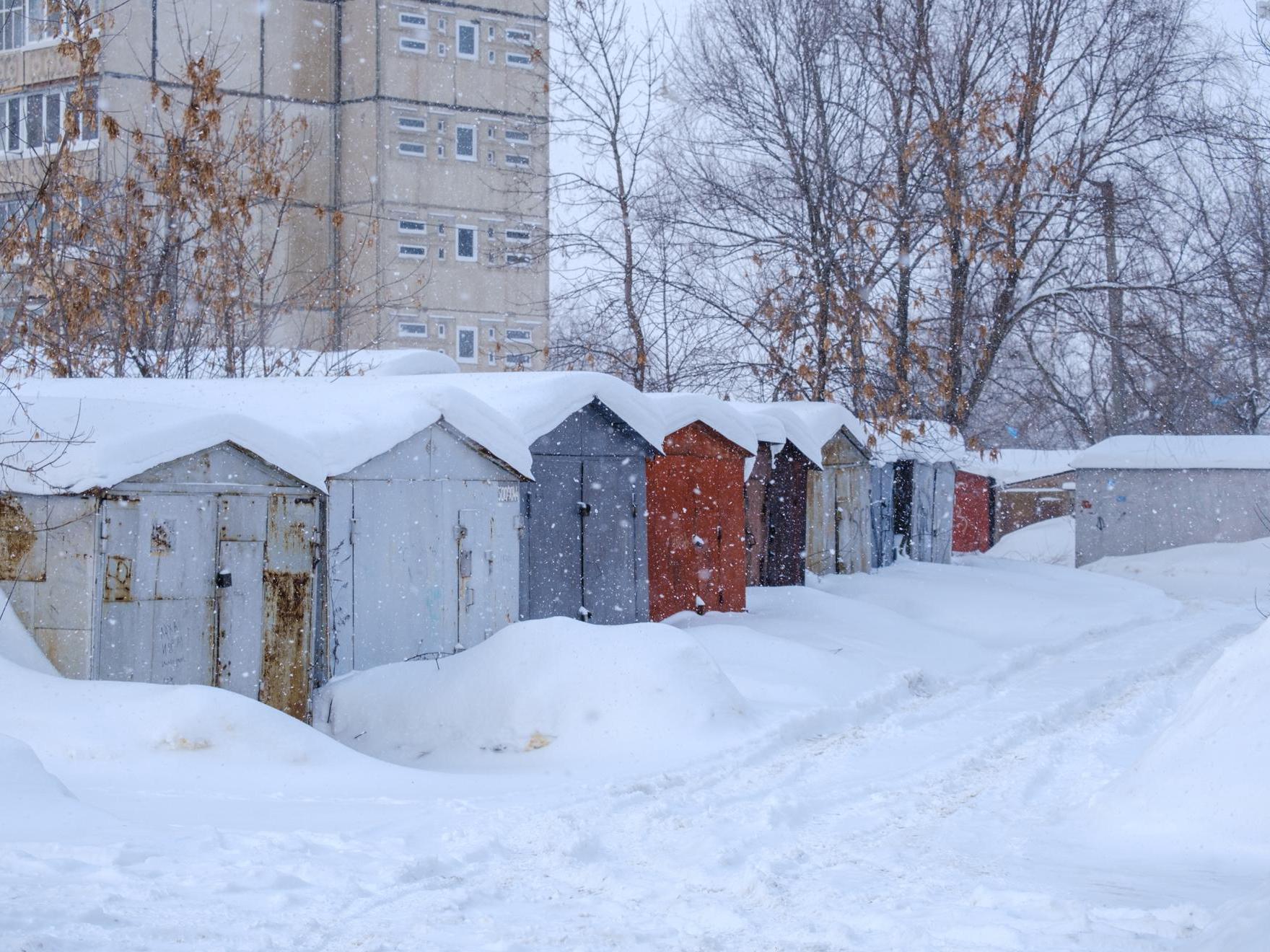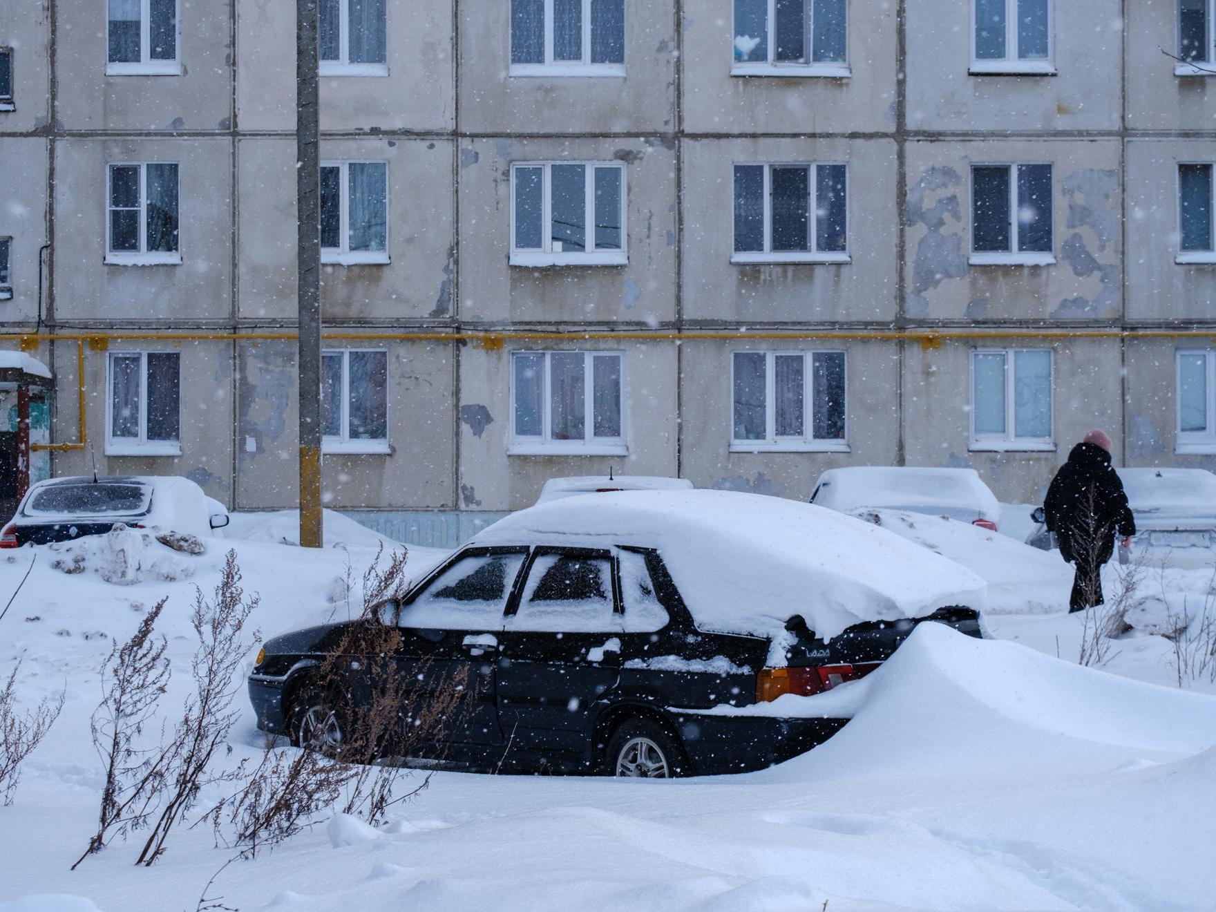 At the exit from the garages, we see a gloomy high-rise, near which stands a snow-covered «pyatnashka» — a VAZ-2115. Apparently, the owner couldn«t drive out and decided to leave the »swallow« to winter.
