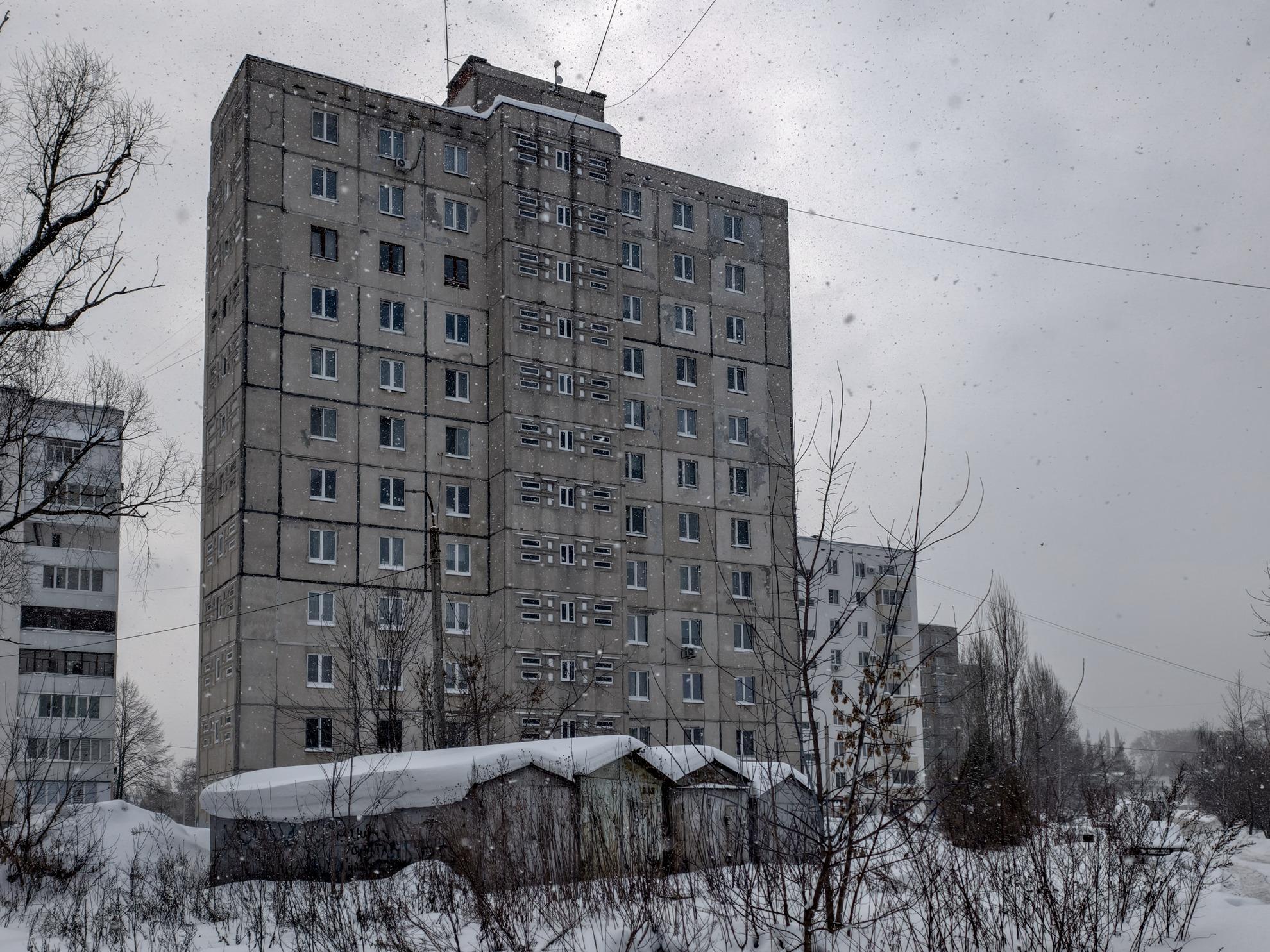 But even in such conditions, the area looked decent: ordinary «Brezhnevki» (typical Soviet apartment blocks), nine stories high, with private houses standing somewhere among them.