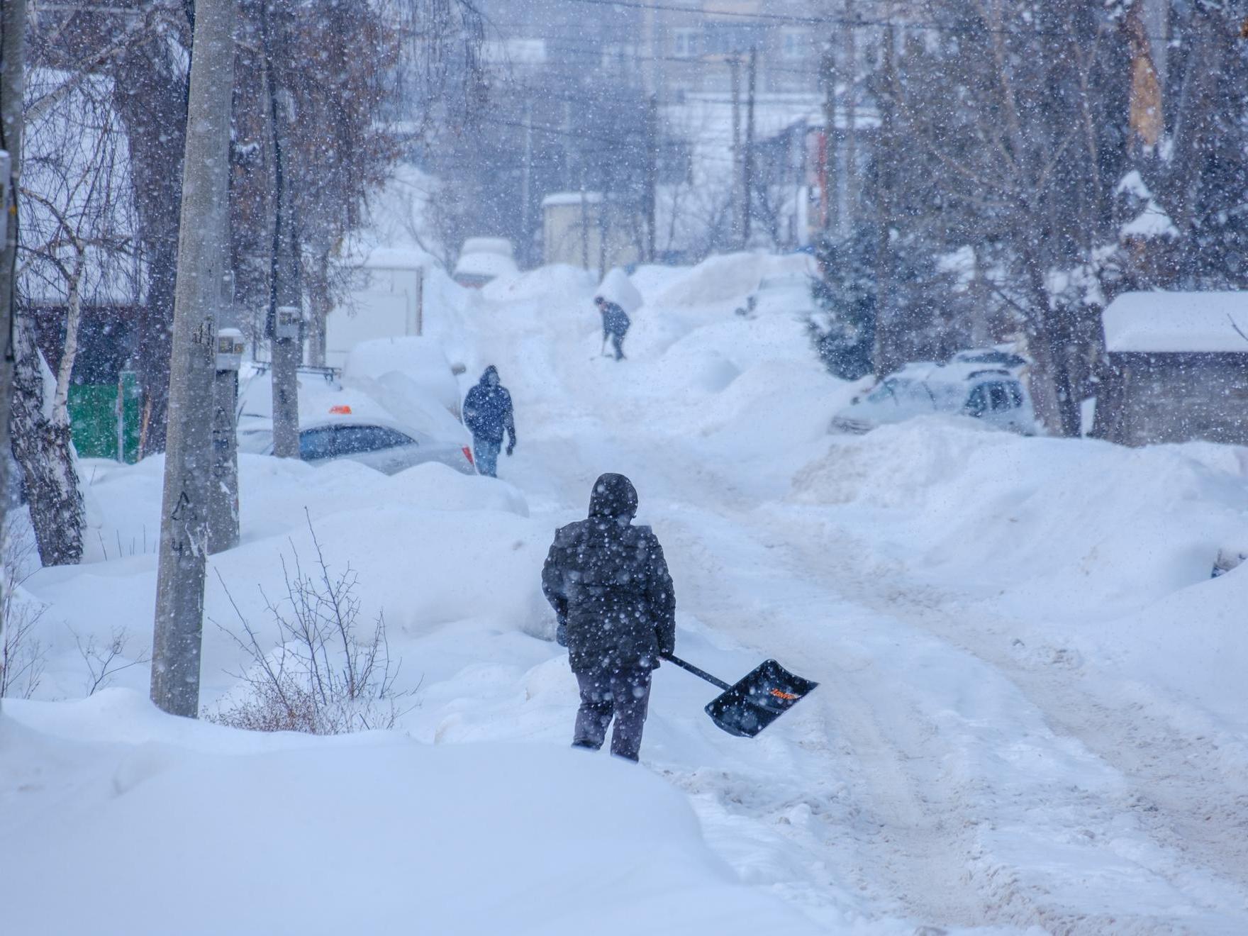 There is so much snow here that the locals who are not at work have come out with shovels to clear the yard and driveways.