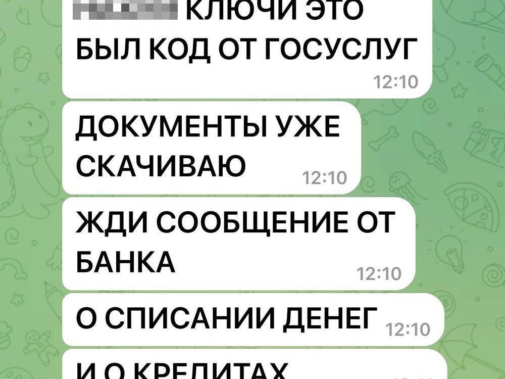 «You old fool, transfer it to yourself! That was the Gosuslugi code. I«m already downloading your documents, expect a message from the bank about money transfers and loans. Get ready to sell your apartment,» — wrote the scammer.