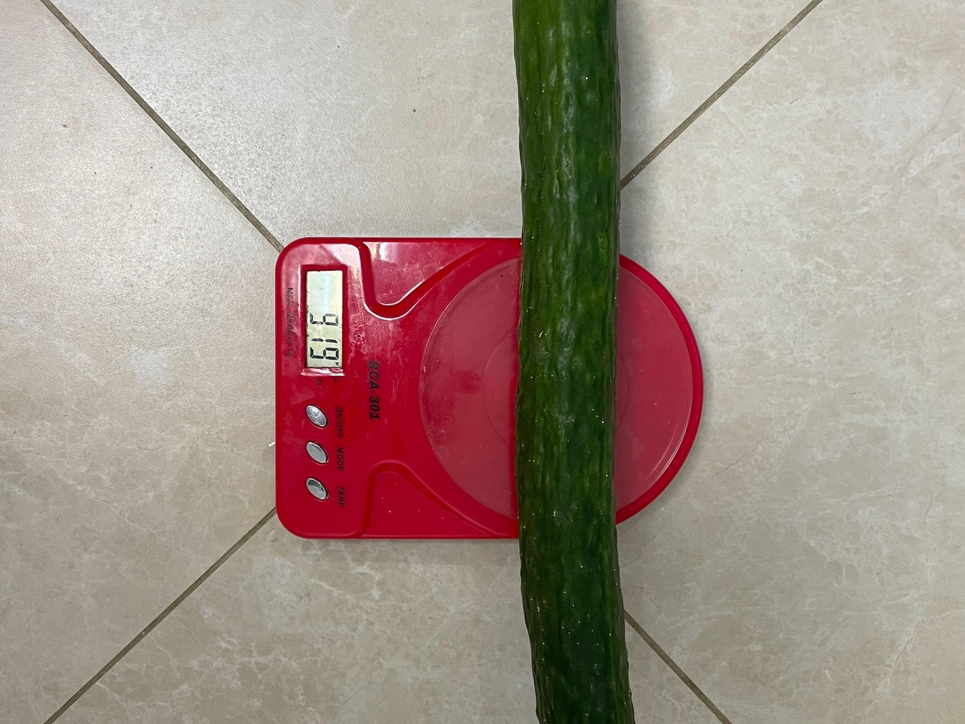 Here is the long Chinese cucumber she managed to grow to exceptional length.