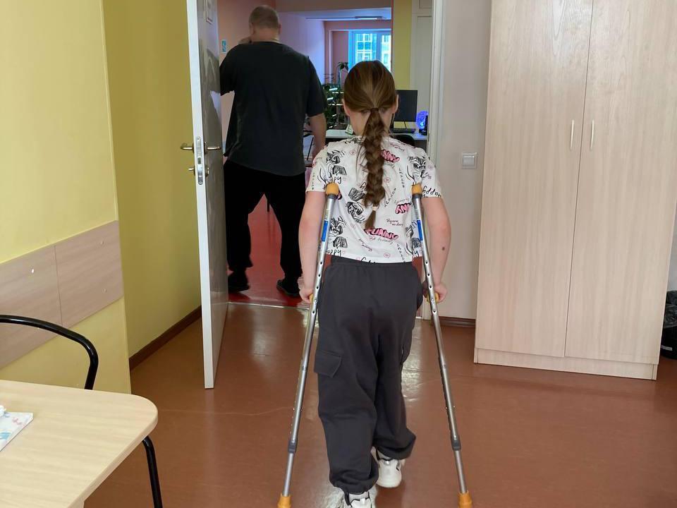 After discharge from the hospital, they bought the girl crutches, but she couldn«t stand on her feet and walk that way.