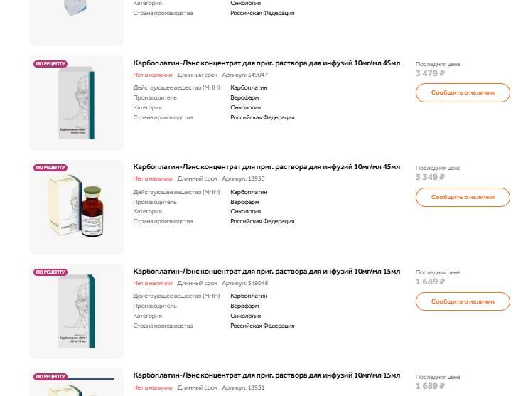 In the region«s pharmacies, the situation with Carboplatin is the same as in the Moscow, Voronezh, and other regions of Russia. That is, the medicine is simply not available for retail sale—it cannot be bought, and sometimes not even ordered.