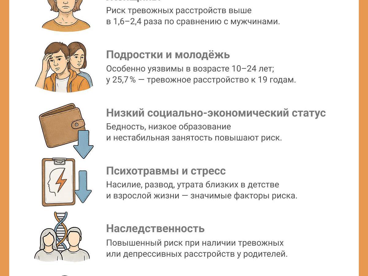 Several factors can provoke an anxiety disorder. According to the psychotherapist, a psychoemotional disorder can arise from childhood trauma: the absence of a safe adult and a lack of attention to the child’s thoughts, feelings, and needs.