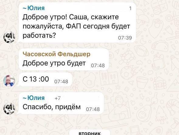 One resident, who wished to remain anonymous, said: «A year ago, a »Zemsky« paramedic was hired for our FAP. They built us a new FAP using the latest technology so we wouldn»t have to travel to Ilovlya. We were very happy because the paramedic who arrived was knowledgeable. All the residents were delighted, but the happiness didn«t last long. For six months we knew that from Monday to Friday, from 8:00 a.m. to 4:00 p.m., we could find the paramedic at the FAP. However, in the last six months, getting an appointment with him has become a near-impossible task. We go once—the FAP is closed, we go twice—closed. In the chat, the paramedic writes he will be there on Friday. So it turns out the FAP is closed all week, the paramedic is working who knows where, all while receiving his salary and program payments.»