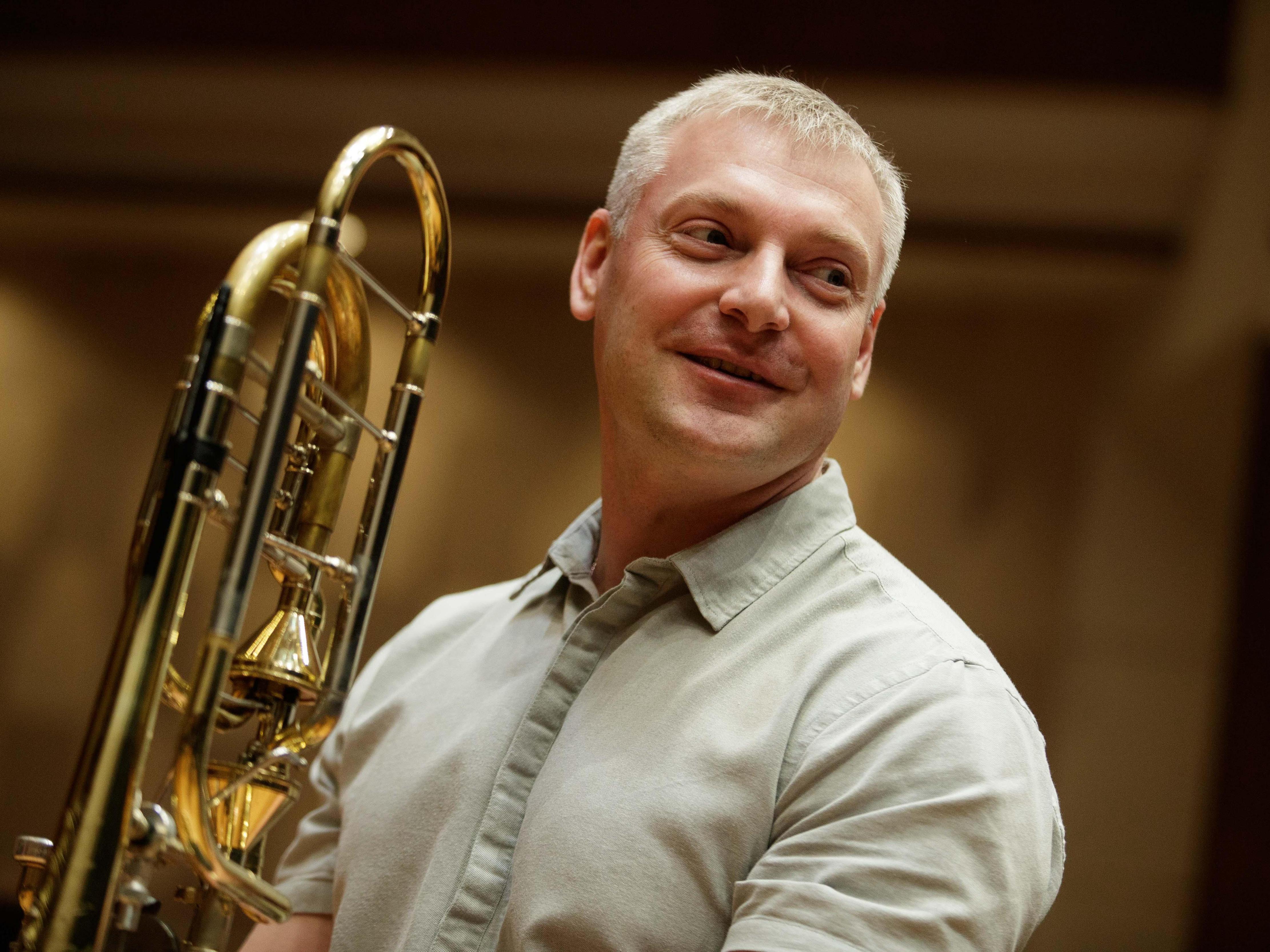 «When you go on stage, there»s always trepidation — without it, it«s impossible. If you go on stage and don»t get nervous, you«re wasting your time with music, it»s not your place. Without inner trepidation, a living soul, music doesn«t exist,» the musician hugged his instrument. «Usually, the trombone is treated like this: it should either scare with a loud sound or bury with a mournful one. Actually, on the trombone you can play anything. Lyrical, romantic, scary, quiet — any music. The instrument»s possibilities depend exclusively on the musician. And the timbre — that«s also a personal marker.»