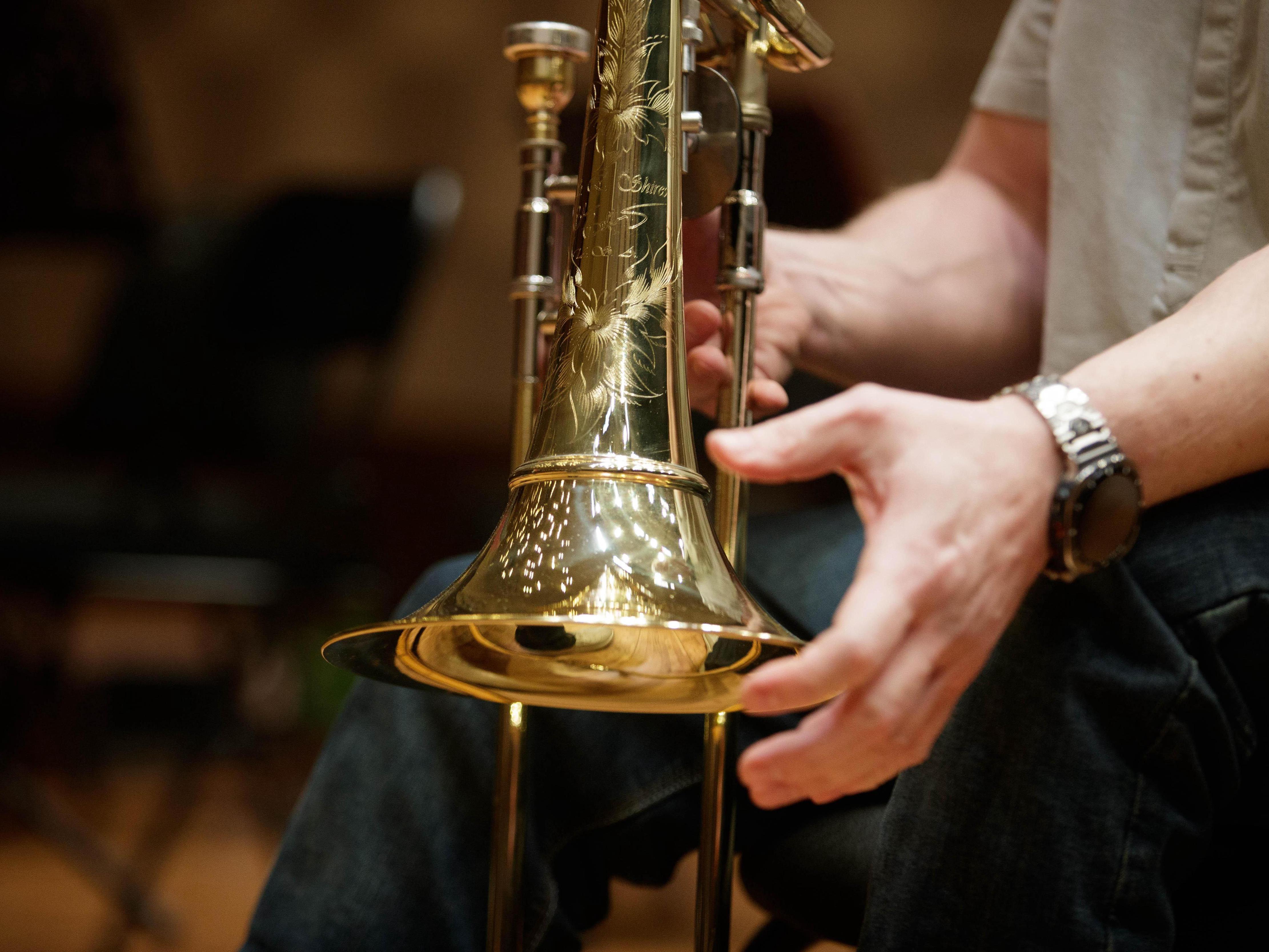 «Of course, I love my instrument,» Yevgeny shifted the trombone from hand to hand. «I think I was very lucky in this life that I ended up in music. And if I were in some other profession, most likely, it would have been much harder for me.»