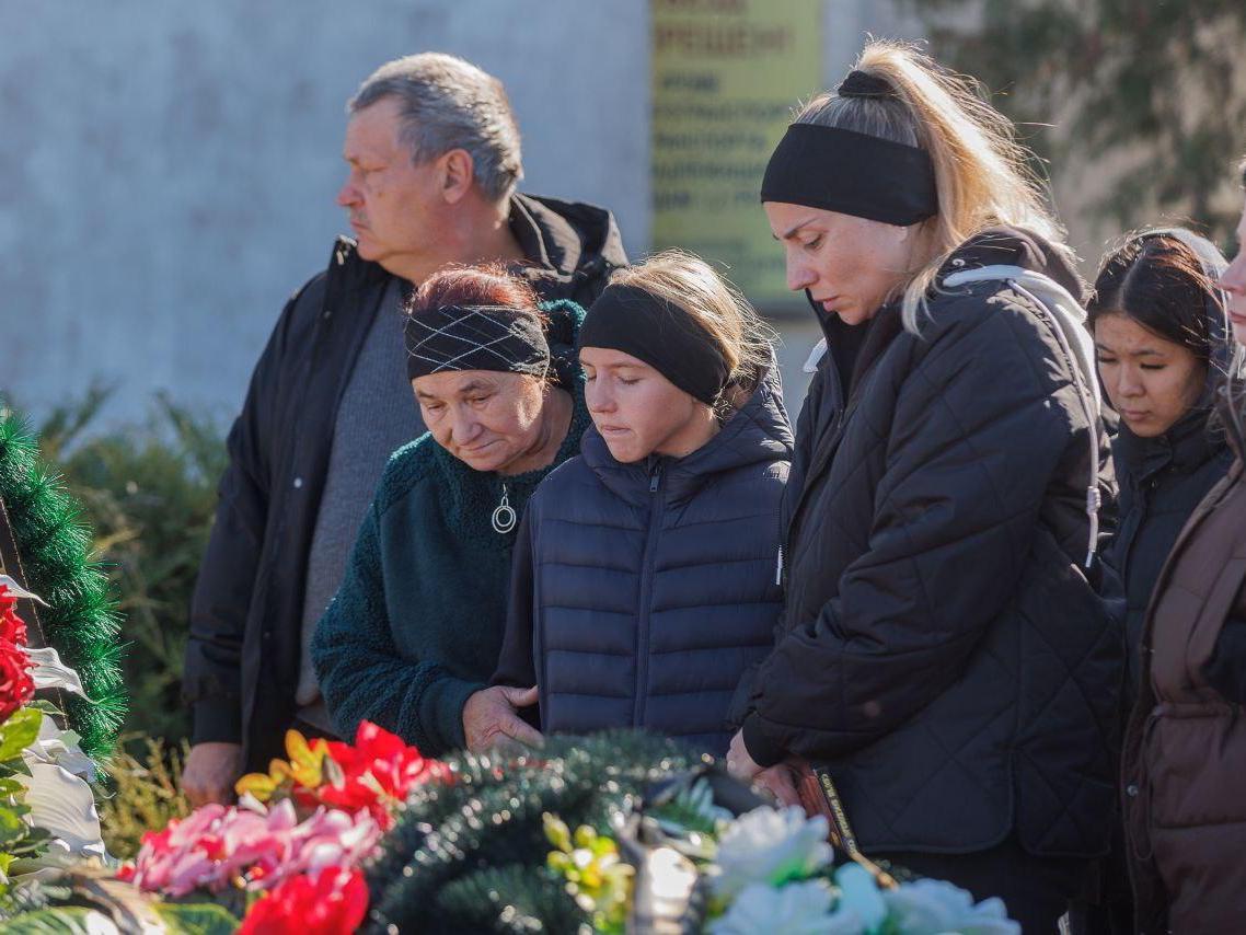Friends and relatives gathered to bid farewell at the funeral in Volzhsky.