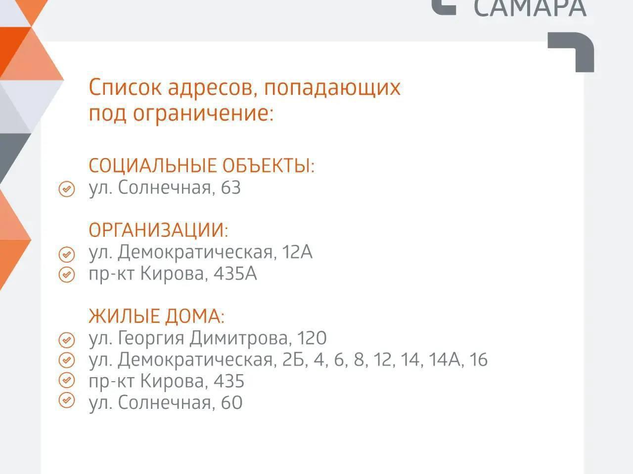 Heat supply has been suspended until further notice for houses at the addresses listed below.