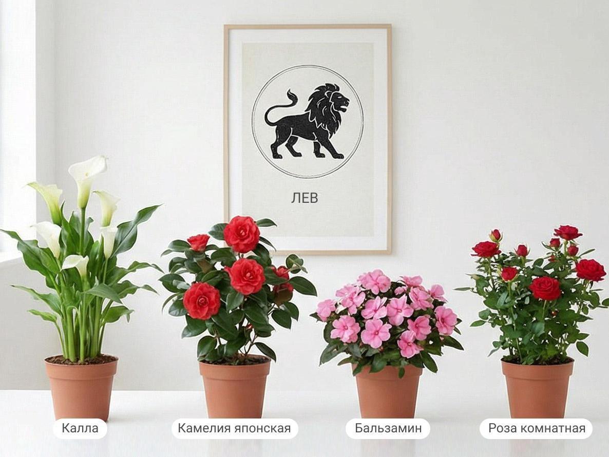 According to Anastasia Pershina, calla lily will help Leos realize creative ideas. Japanese camellia reduces irritability and helps reveal creative potential. Indoor rose is worth getting for success in love.