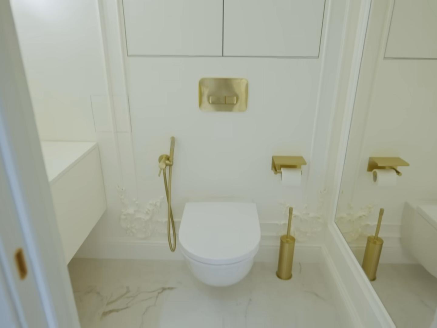 As soon as you step through the door, there is a huge mirror in the hallway, and in the guest toilet there are two of them facing each other. According to Zhidkovsky, many advised him against creating such a “mirror maze” because, according to superstition, negative energy can pass through it. The blogger listened, nodded, thought for a second, but left everything as is. After all, it is a toilet that he himself hardly ever uses.