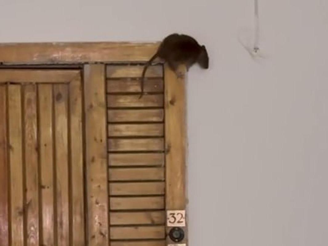 Rats infest the common hallway of a residential building in Chelyabinsk.