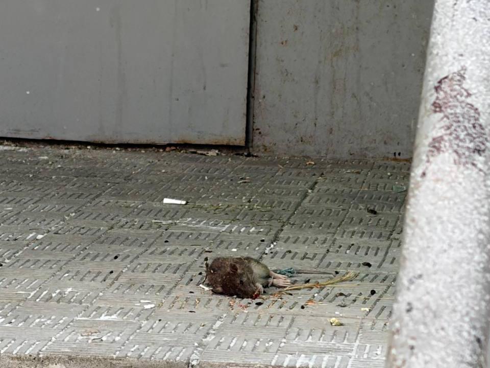 Dead rodents are left in the building«s entrance after failed extermination attempts.