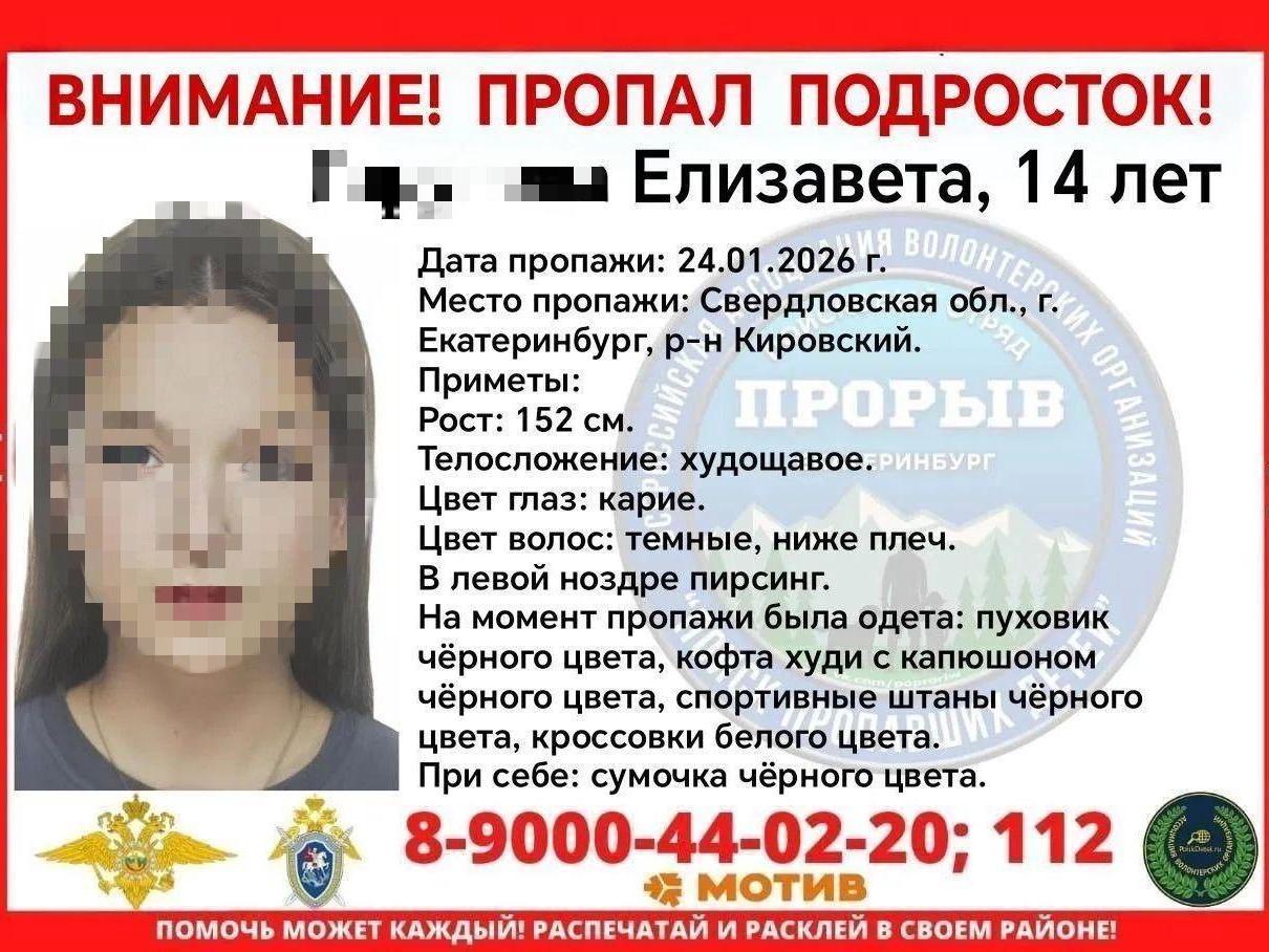On Saturday, 24 January, a 14-year-old girl named Lisa went missing in the Kirovsky District of Yekaterinburg. A friend of the missing girl told E1.RU that Lisa went out with friends on Saturday. After that, she was supposed to go for a sleepover at a friend«s house, but she was not there.