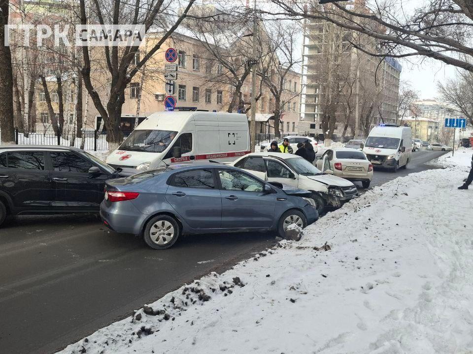 On Tuesday morning, January 27, a mass collision involving four vehicles took place near the television center in Samara, leaving a 20-year-old woman injured.