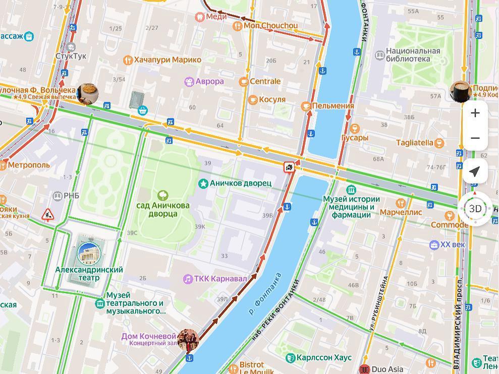 As a result of the accident, the lane for turning right onto Nevsky Prospekt was blocked. A traffic jam built up on the odd-numbered side of the Fontanka Embankment from Lomonosov Square.