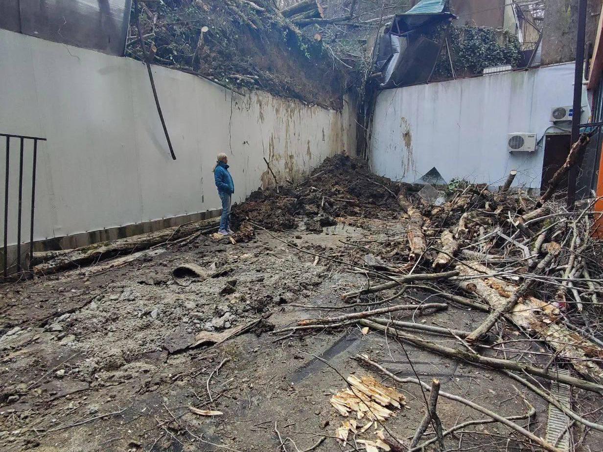 In the Adler district of Sochi, a landslide has been recorded near an apartment building. Earth with large trees has slid from the slope of a neighboring plot and continues to move towards the residential building at Petrozavodskaya Street, 26/5.