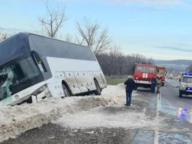 UPD: According to the Kuban (Krasnodar region) State Traffic Inspectorate, the bus passengers were taken to Novorossiysk by passing vehicles.