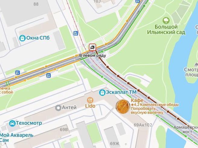 A screenshot from Yandex.Maps illustrates the traffic congestion on Potapov Street following the collision.