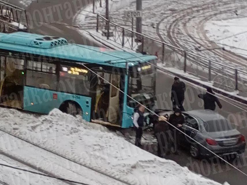 An image provided by a Fontanka reader captures the bus on the tram tracks after the accident.