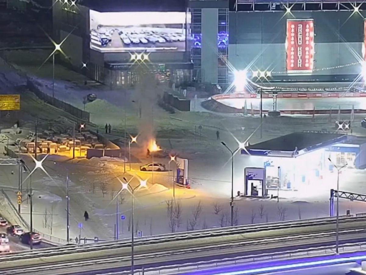 Today around 6:00 PM near the Perm Expo congress center, a car parked not far from a gas station caught fire. A reader of 59.RU sent screenshots from surveillance cameras showing the vehicle ablaze, with bystanders attempting to douse the flames with snow.