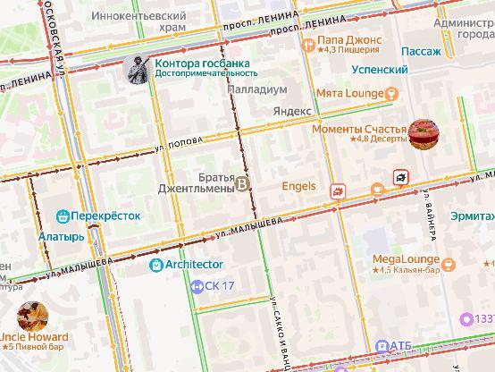 According to eyewitnesses, the accident occurred around 09:00, but the traffic jam on Malysheva, Khokhryakova, and Sakko and Vantsetti streets has not cleared yet. According to Yandex.Maps, another crash happened nearby, on the opposite side of Malysheva Street.