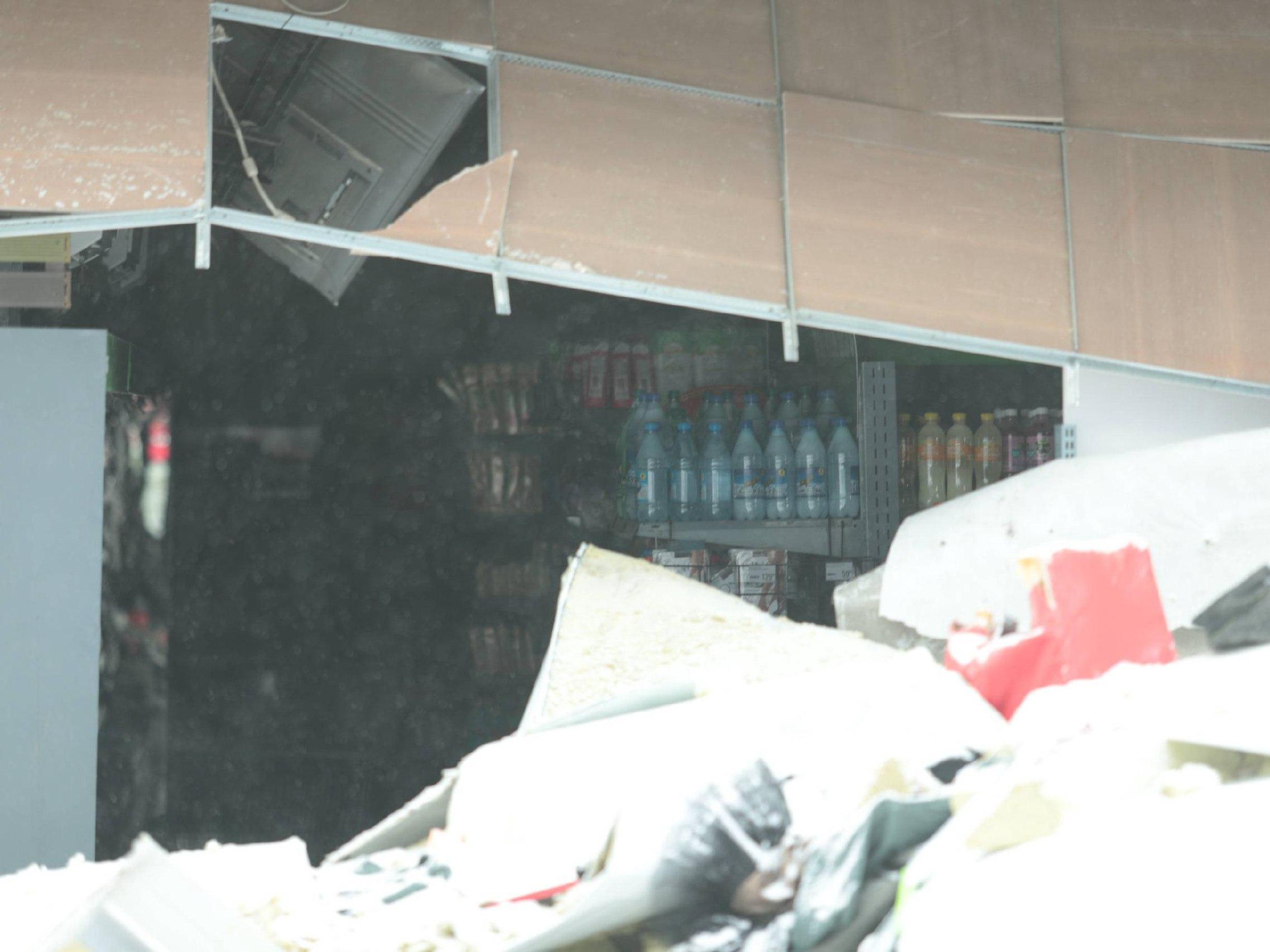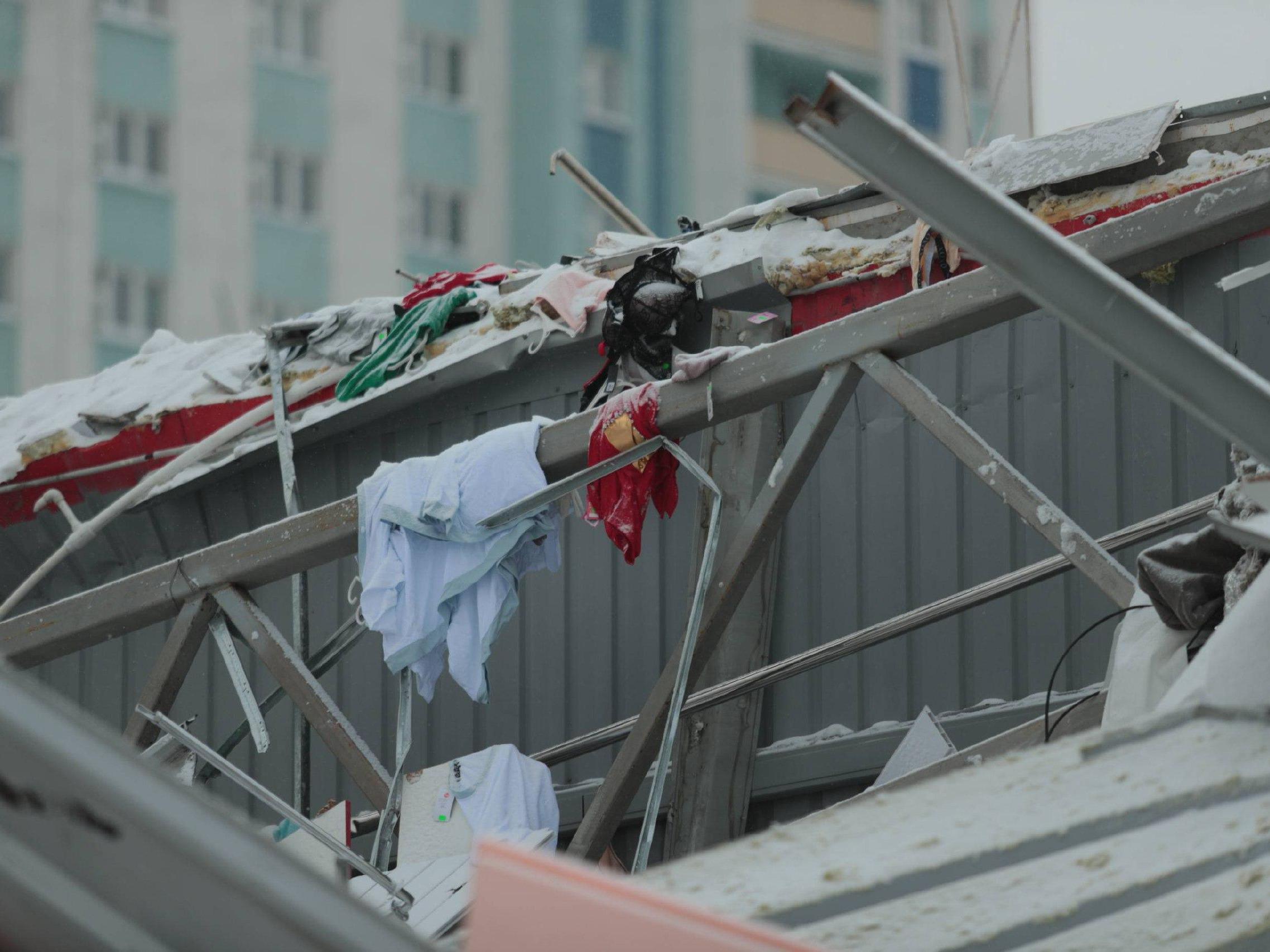 Owners of neighboring kiosks are quickly cleaning their roofs after the collapse.