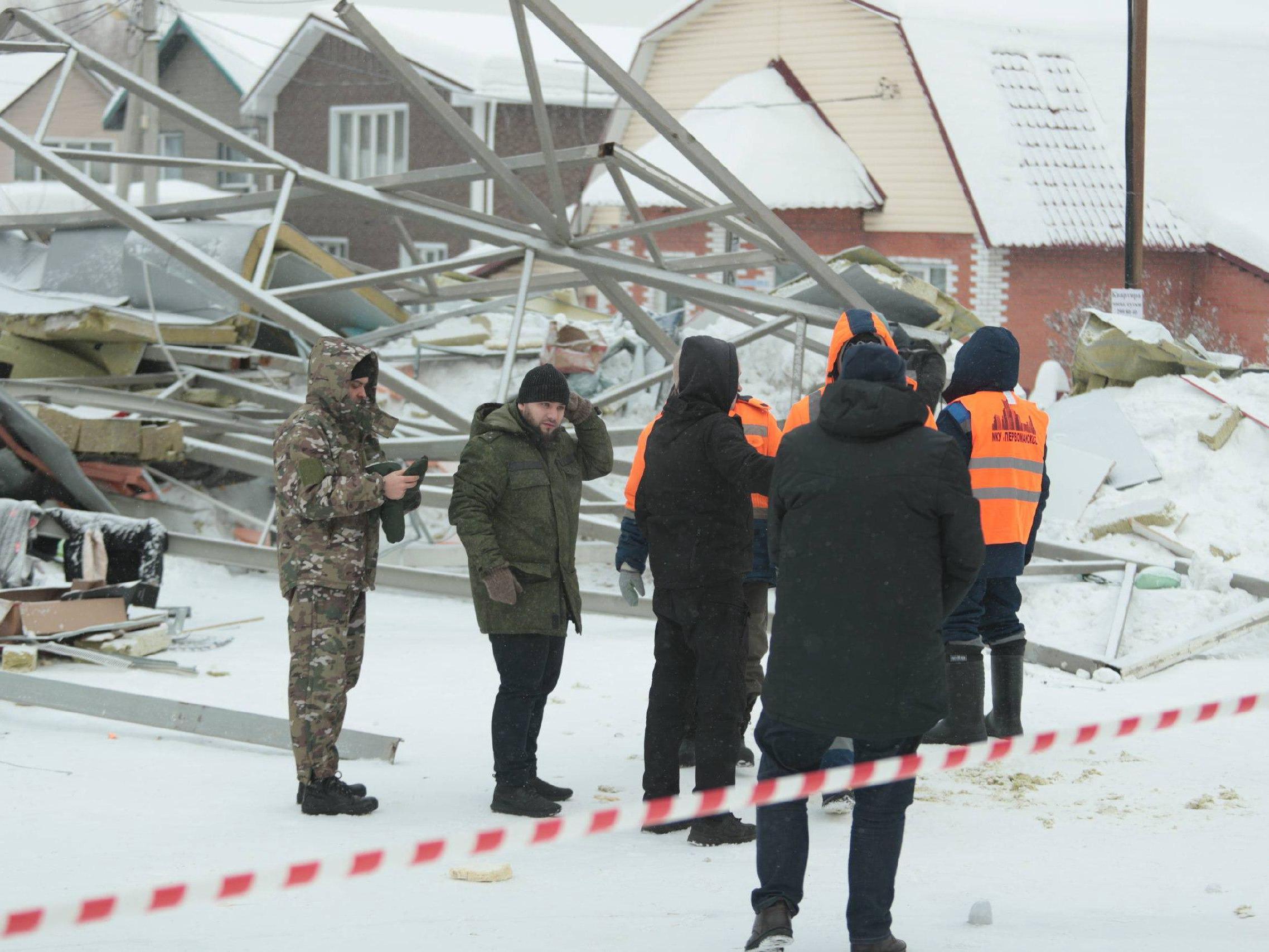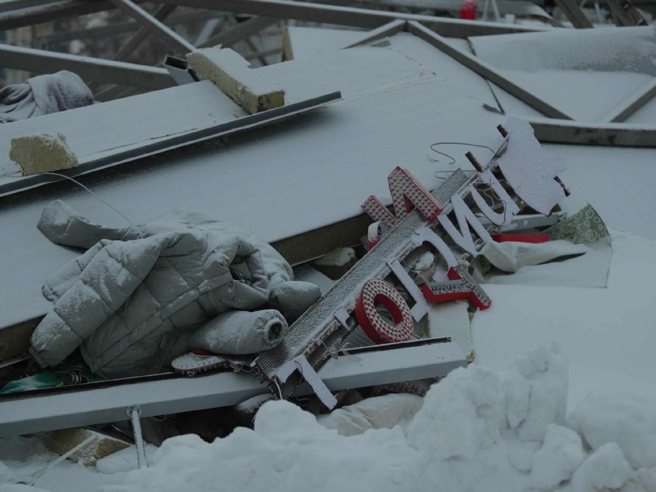 Debris, Police, and Scattered Items at Collapsed Novosibirsk Mall