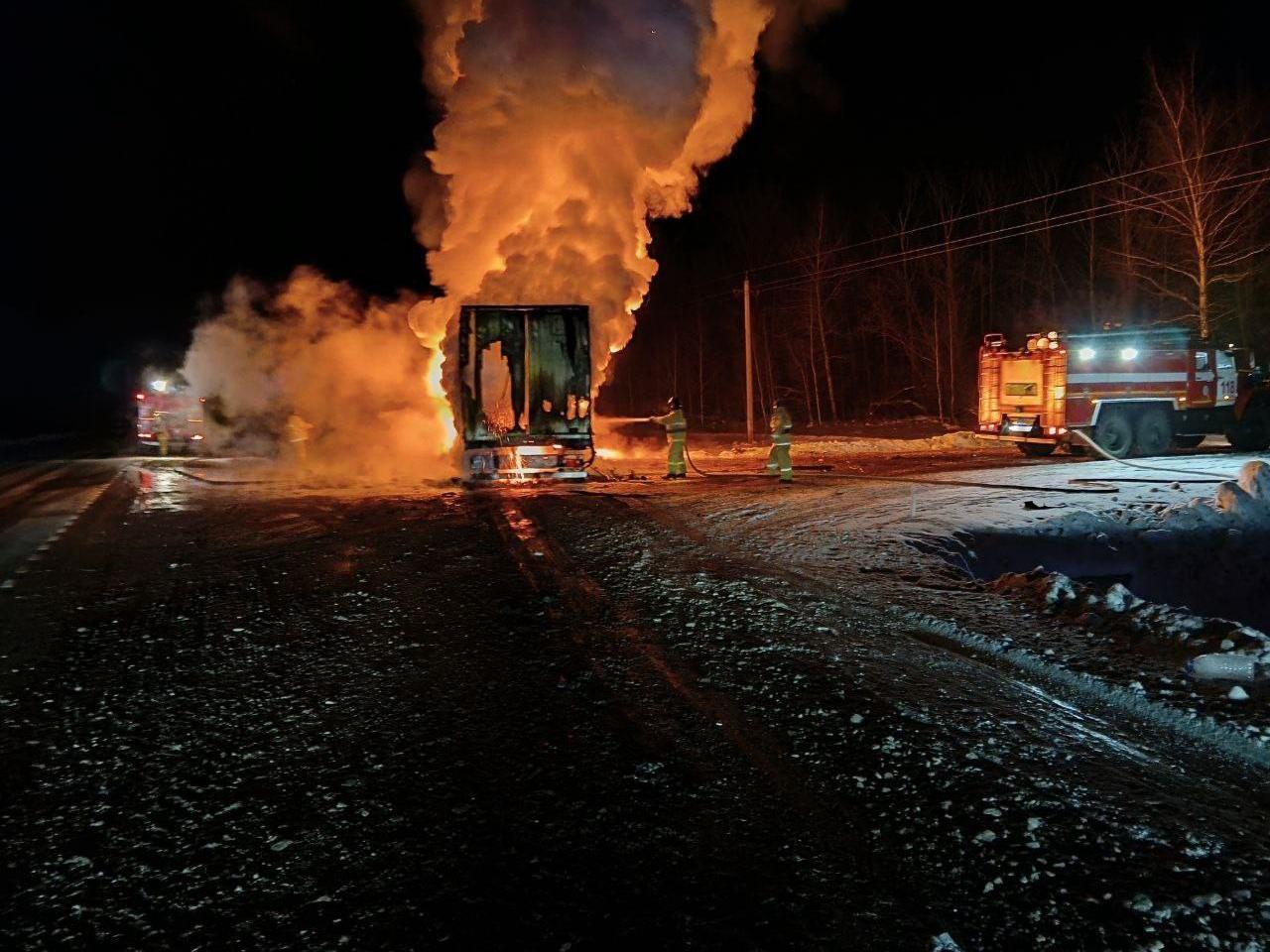 According to them, around 3:30 AM on the M-5 «Ural» highway in Isaklinsky district, a Dongfeng truck and a Volkswagen collided head-on. After the accident, one of the vehicles caught fire.
