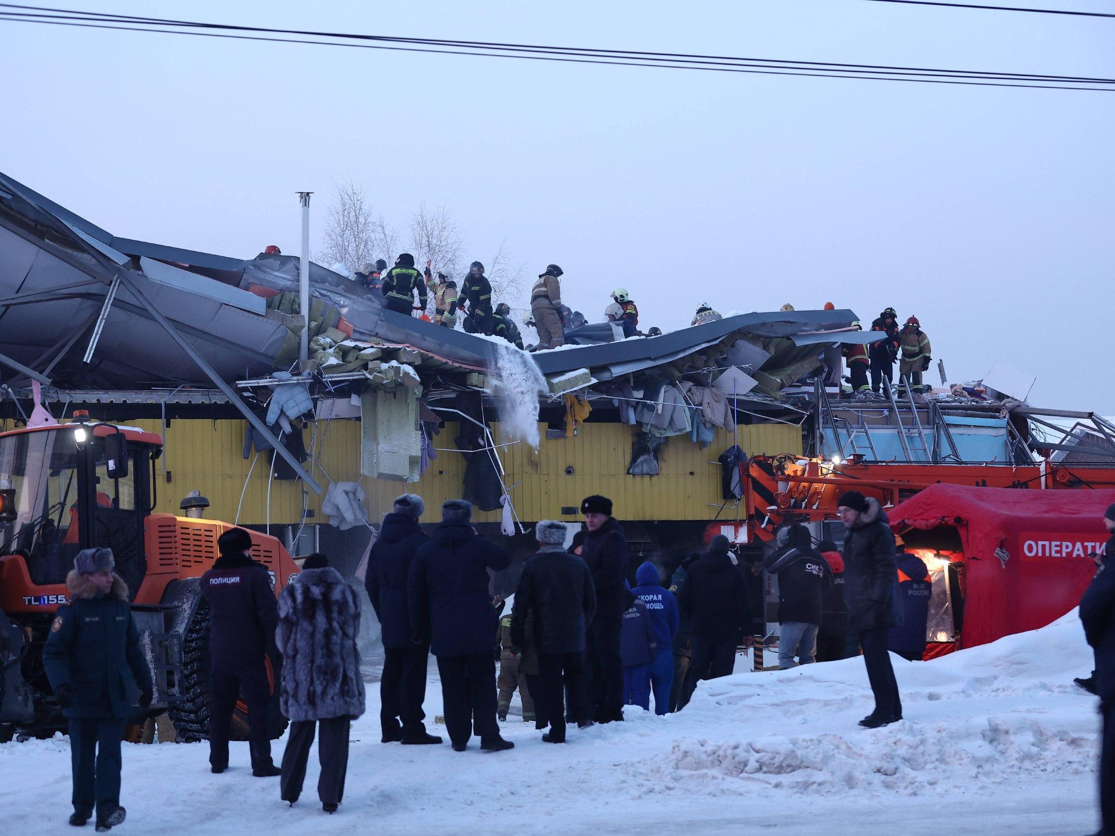 Dozens of emergency vehicles on scene of collapsed Novosibirsk mall