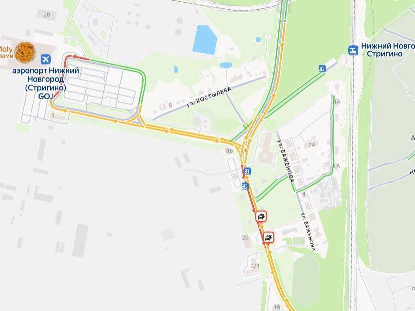 The incident caused a massive traffic jam on the road. According to online maps, the difficulties begin at the turn from Orekhovskaya Street onto Bezvodnaya. The most severe situation is at the «Aviators Museum» stop, where traffic has completely stopped in both directions.